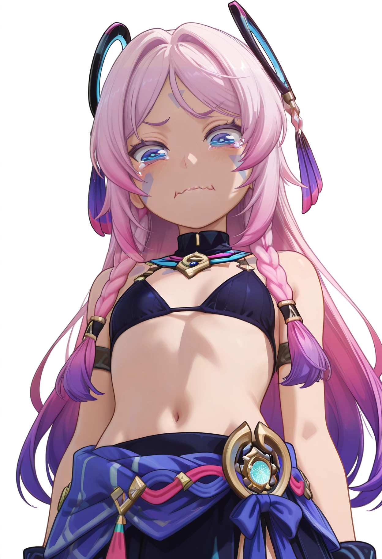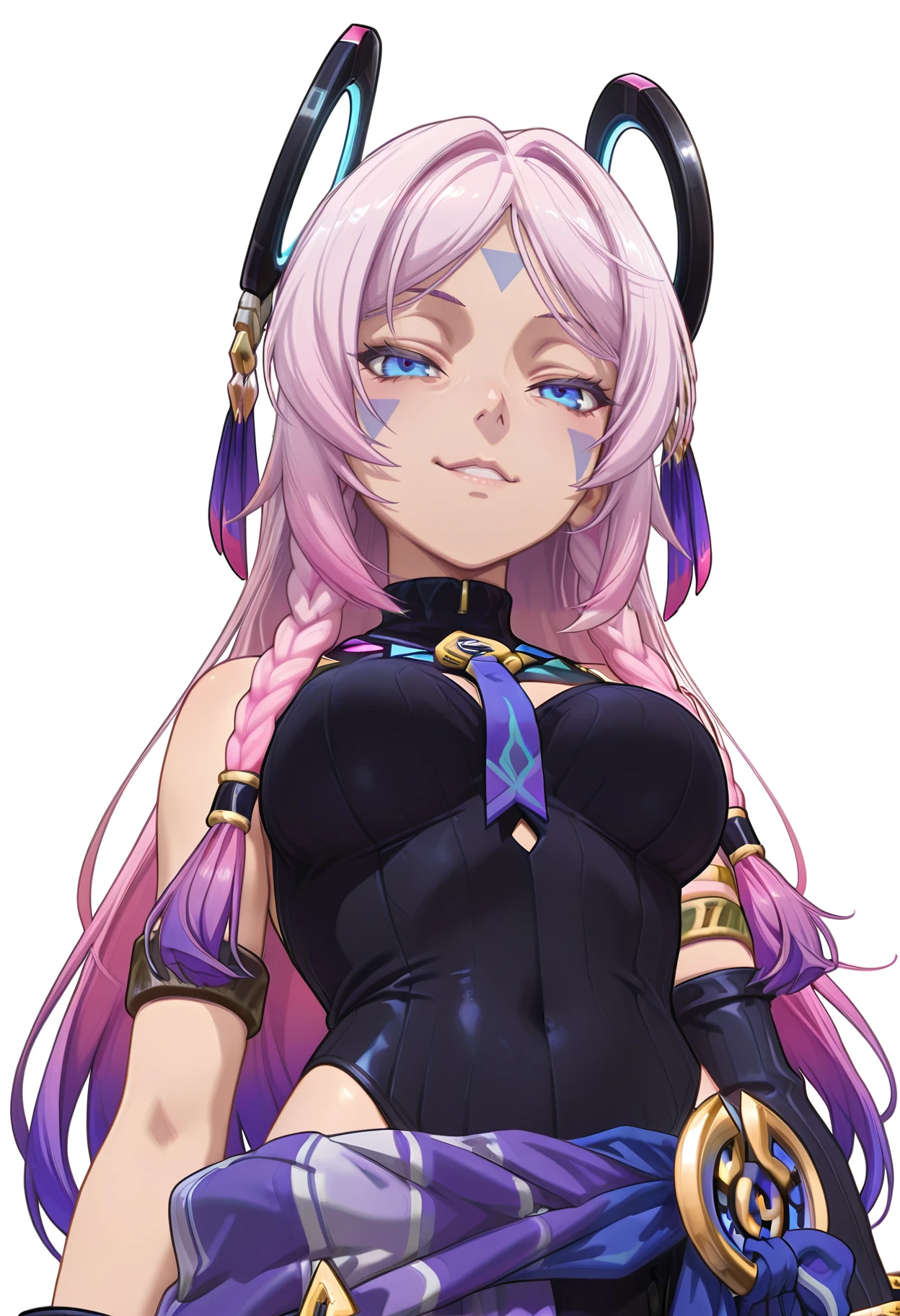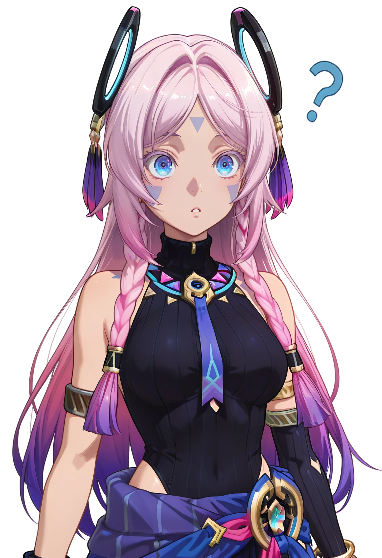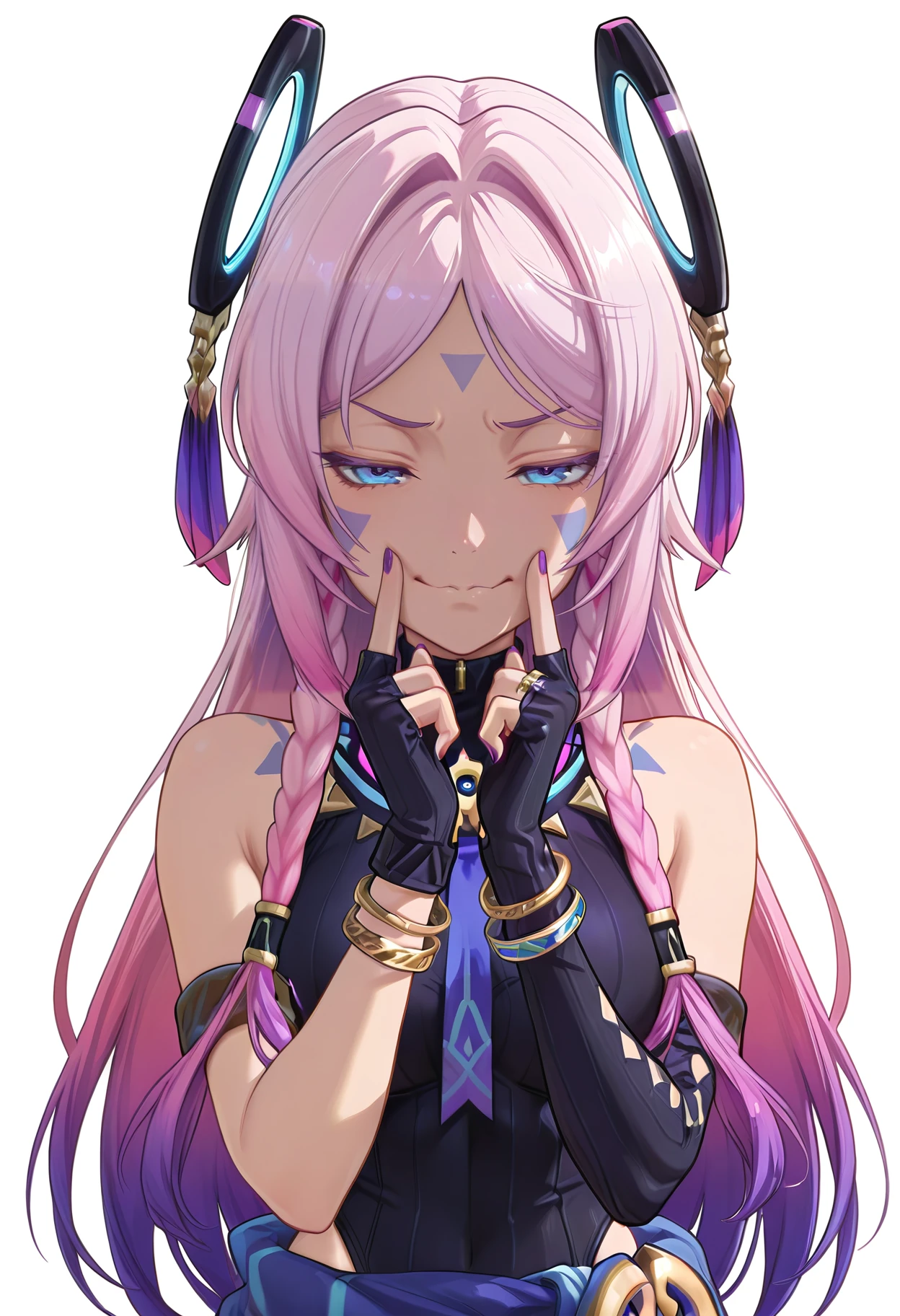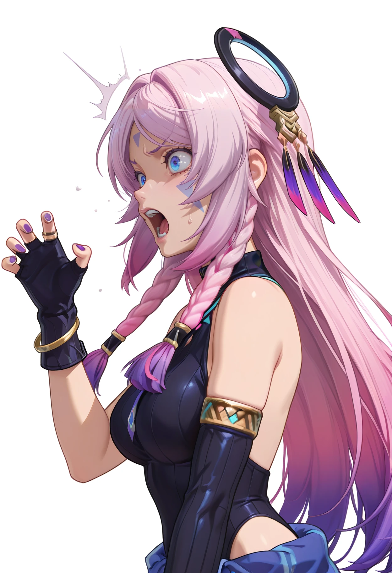 citlalí_il, 1girl,long hair, pink hair, purple hair, multicolored hair, gradient hair, twin braids, side braid,blue eyes,