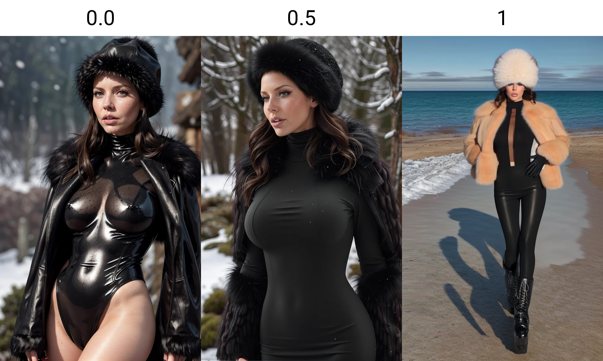This lora generates a winter jumpsuit with fur trim. Try a range of keywords: jumq5uit, 1girl, solo , snow, bodysuit, long hair, outdoors , boots, fur hat, tree, gloves, black hair, fur boots, hat, sunglasses, day, photo background, fur coat, fur trim, winter, breasts, mountain. It plays well with character loras and TIs.