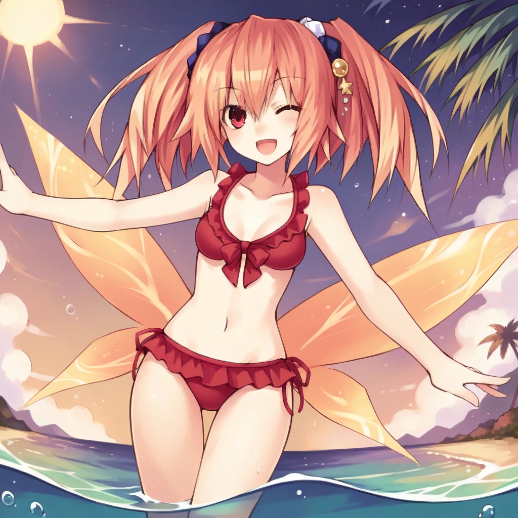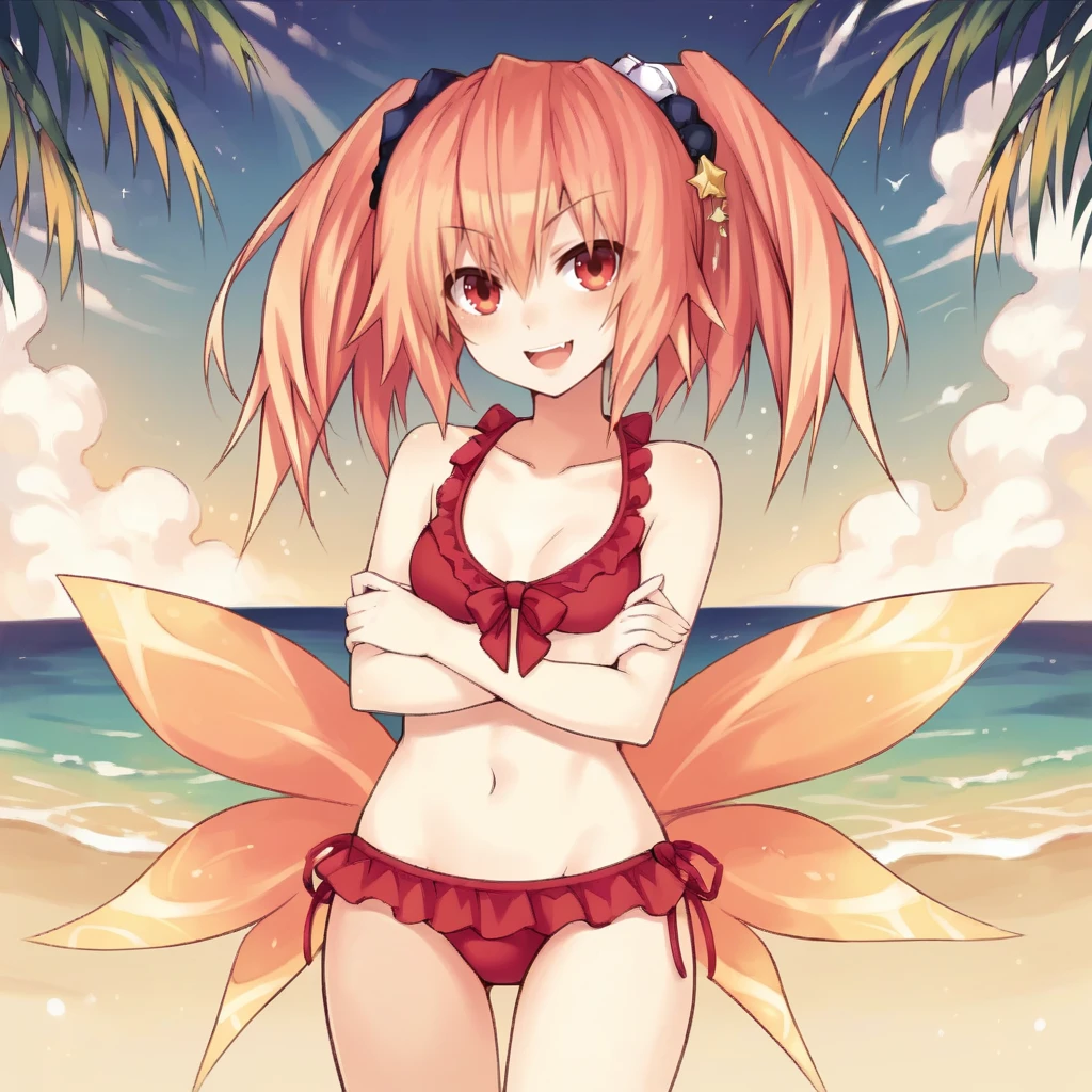ErynFFF, orange hair, red eyes, twintails, long hair, orange wings,Default Outfit: