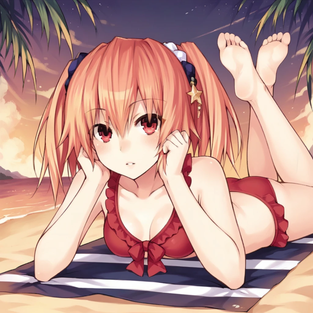 Er_Swm, front-tie top, frilled bikini, red bikini,The results of your generations are dependent on the additional LoRAs, weights, and models you use, so it may not work or come out as consistent as my sample images.