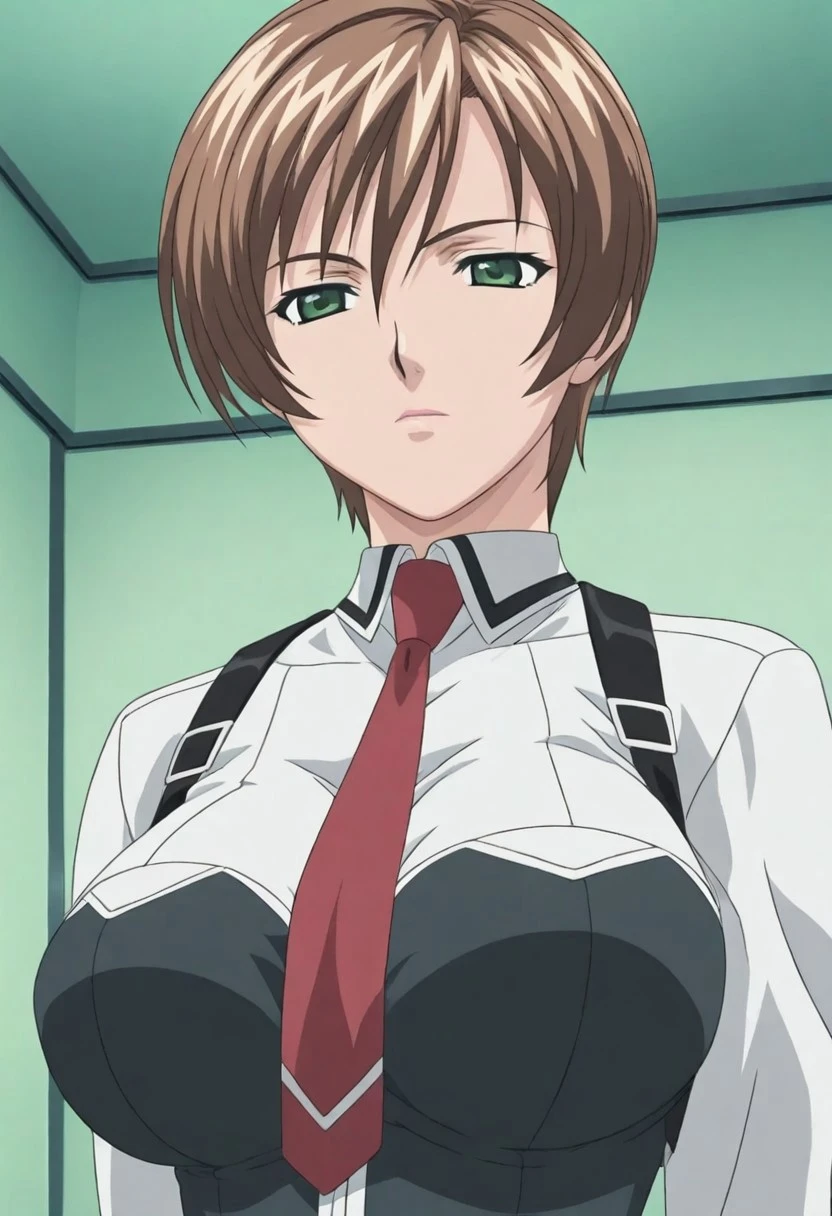shido saki, brown hair, short hair, dark green eyes,