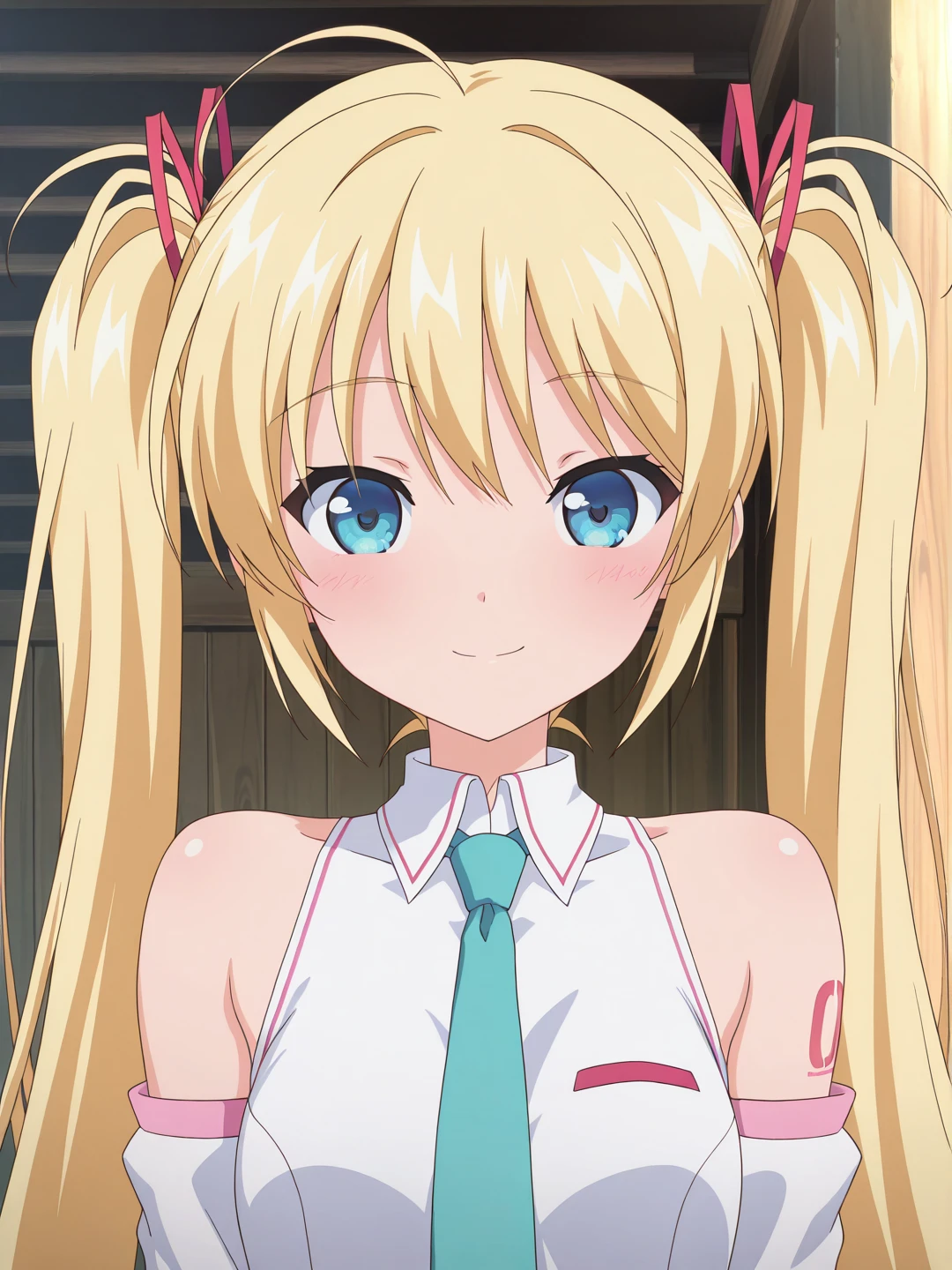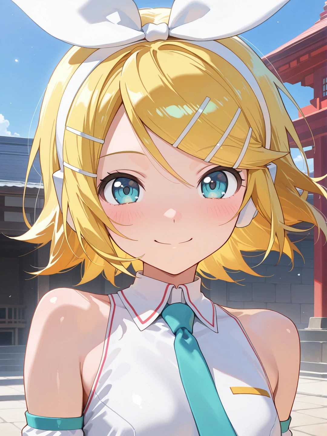 bare shoulders,white dress,aqua necktie,detached sleeves,white sleeves,zettai ryouiki,white thighhighs,thigh boots
