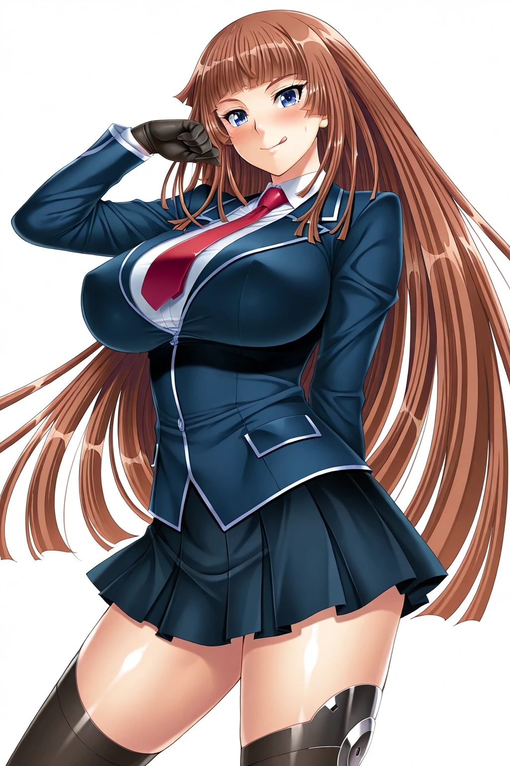 Asuka Koukawa, long hair, blue eyes, large breasts, brown hair, elbow gloves, blunt bangs, armor, high heels, covered nipples, turtleneck, thigh boots, straight hair, gauntlets, high heel boots, fishnet pantyhose, pink footwear, hime cut, ninja, pink gloves, pink bodysuit, impossible bodysuit, impossible leotard, fishnet gloves, taimanin suit