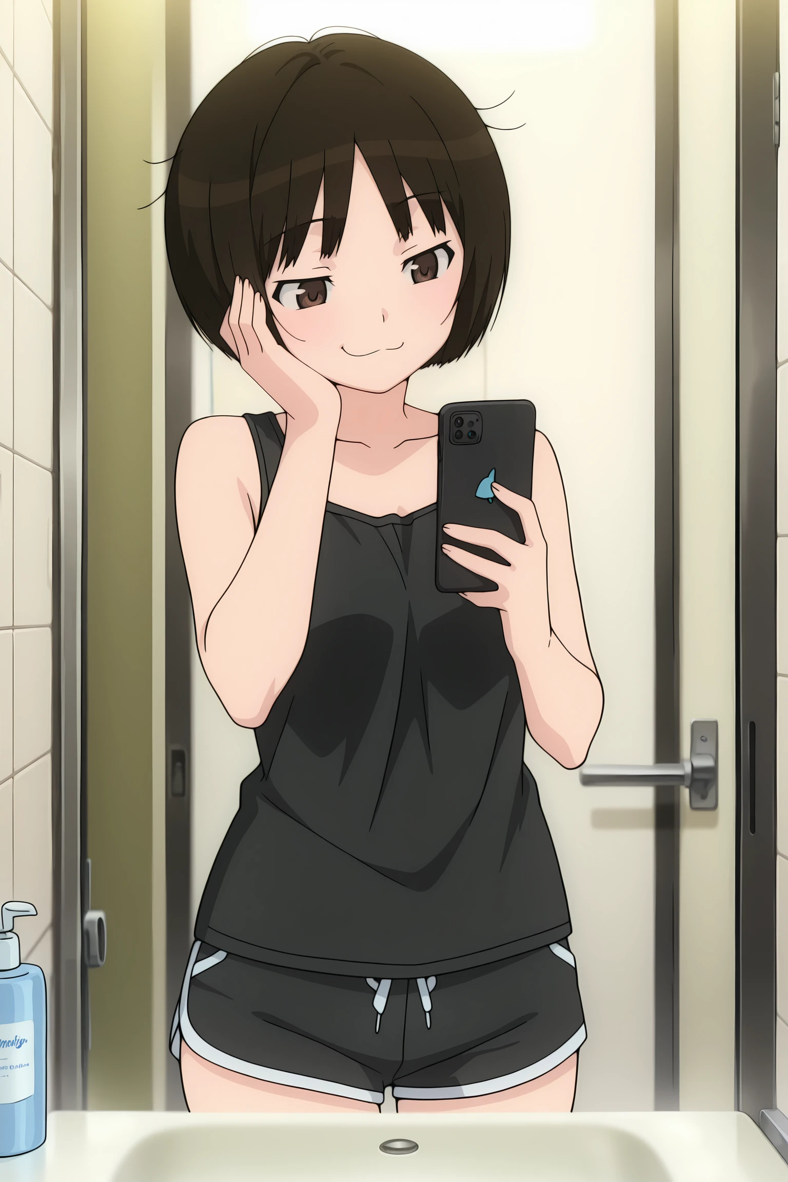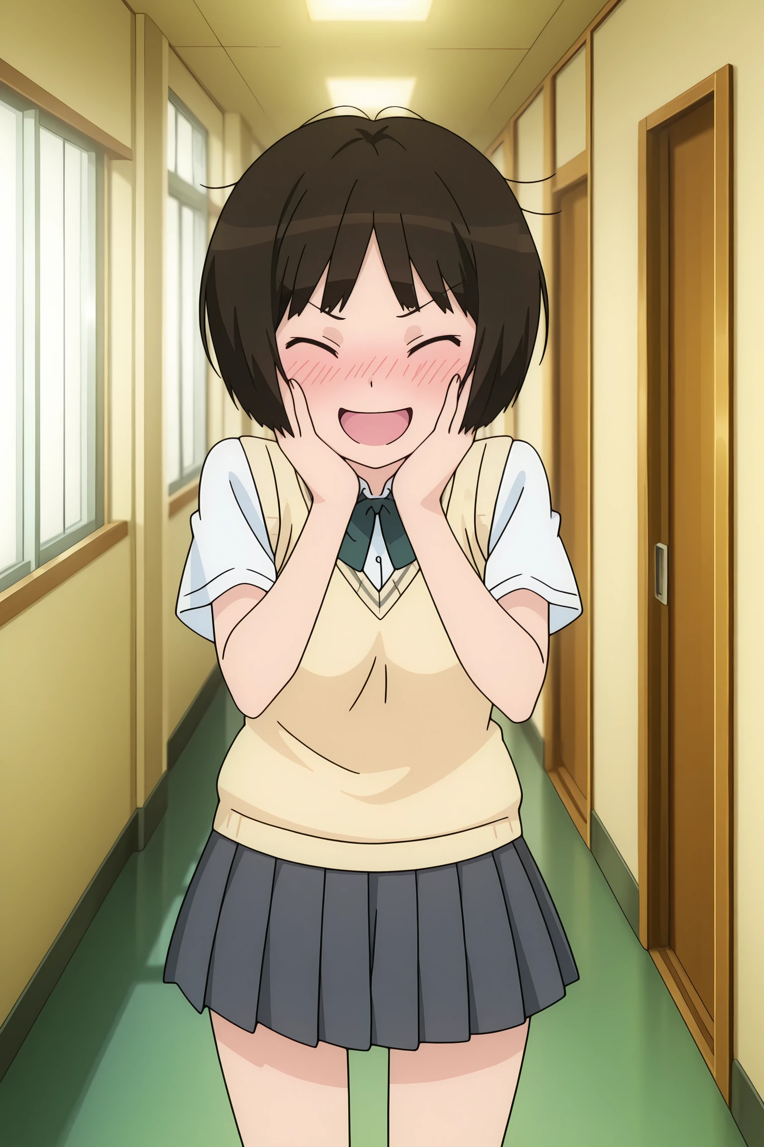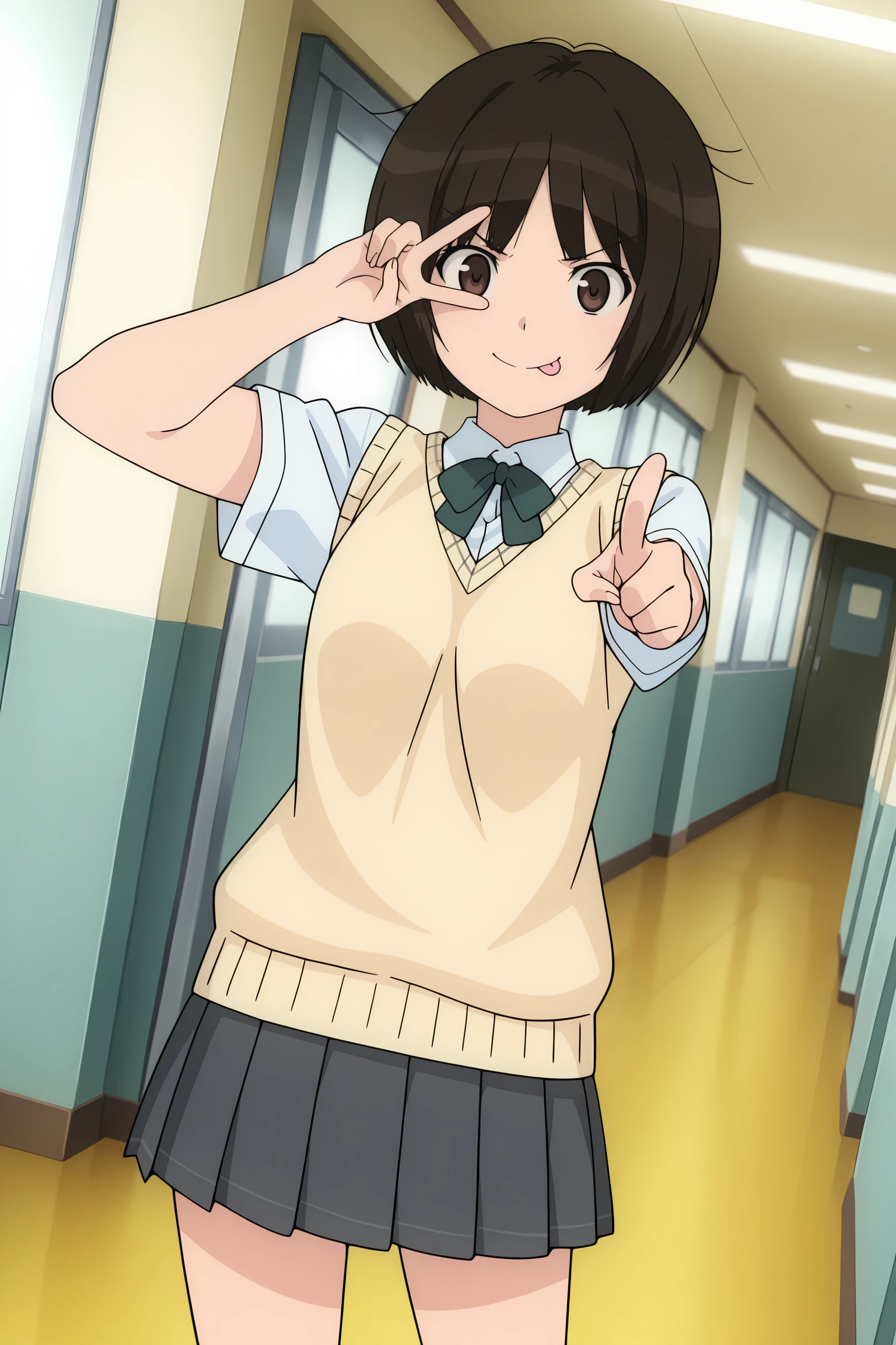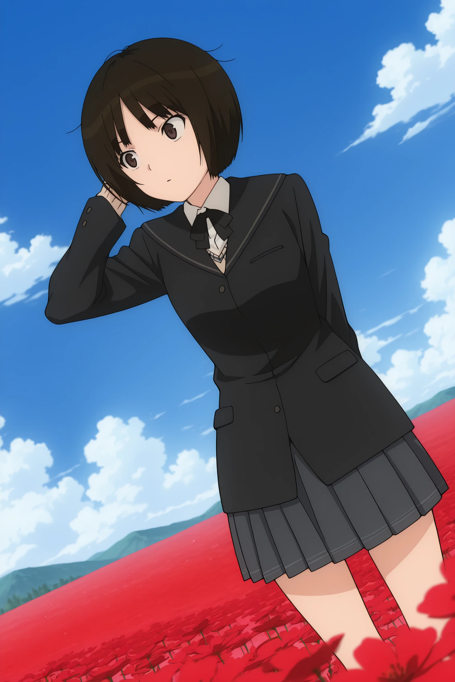 Miya--Tachibana, short hair, brown hair, bob cut, loose hair strand,
