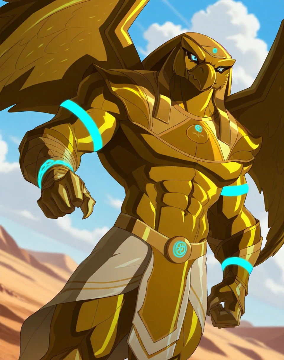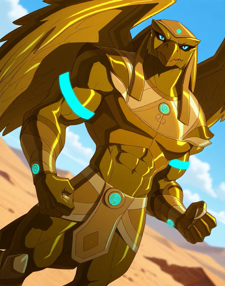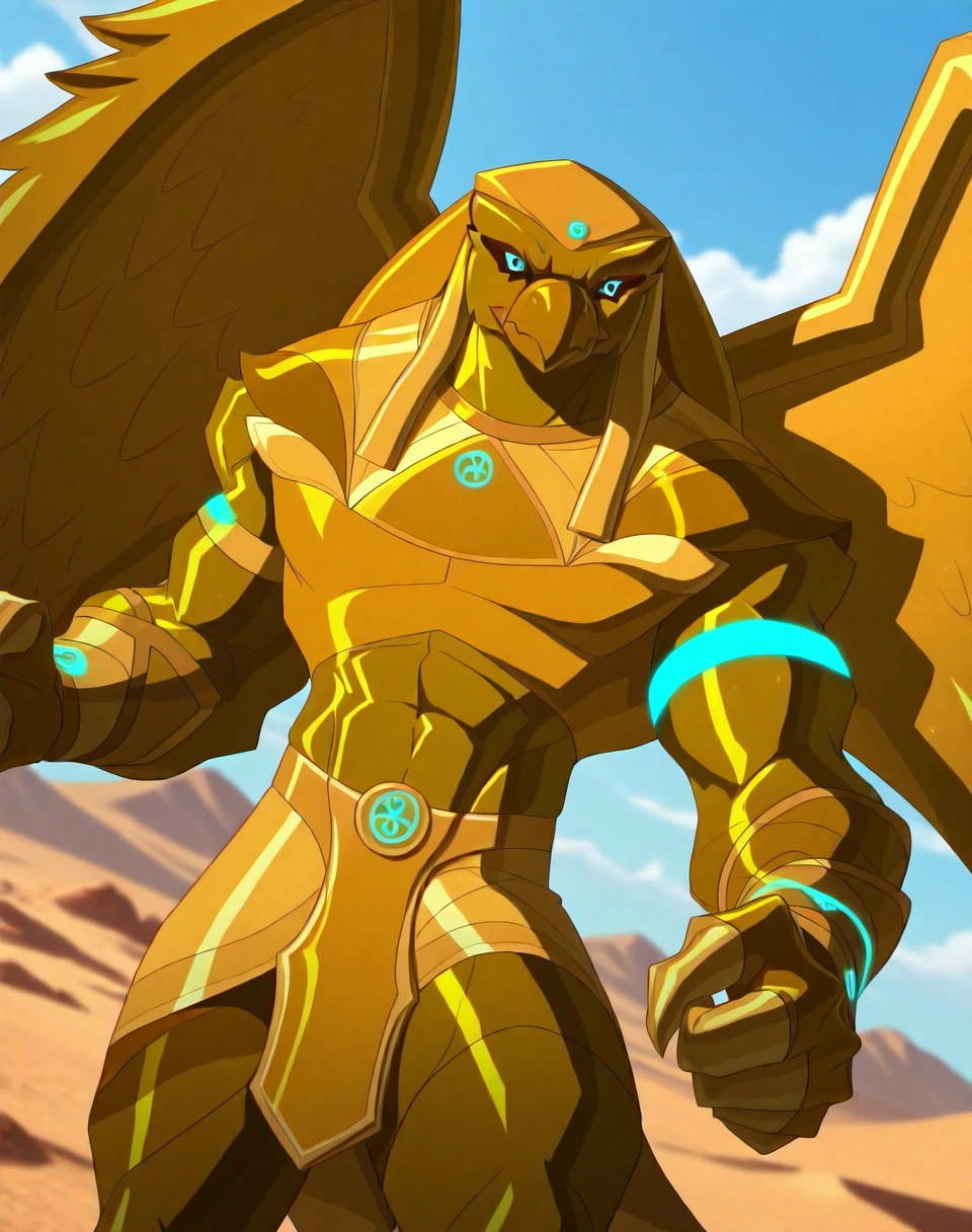 This is an Illustrious lora for the character Horus from the cartoon Egyxos. Horus in the show is a hero on the side of the golden army in the land of Egyxos. This version of him is one where he is wearing his gold armor while in his powered up form.