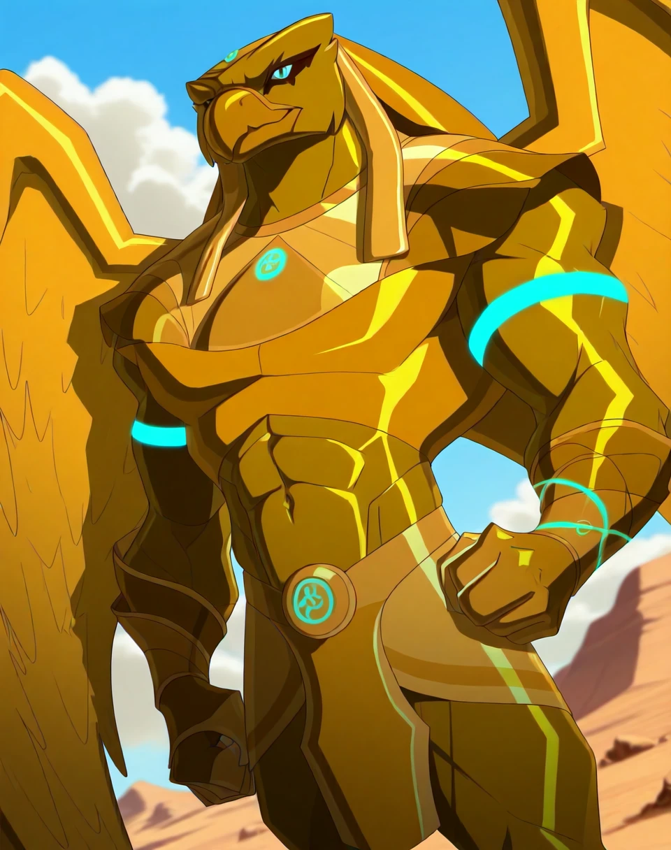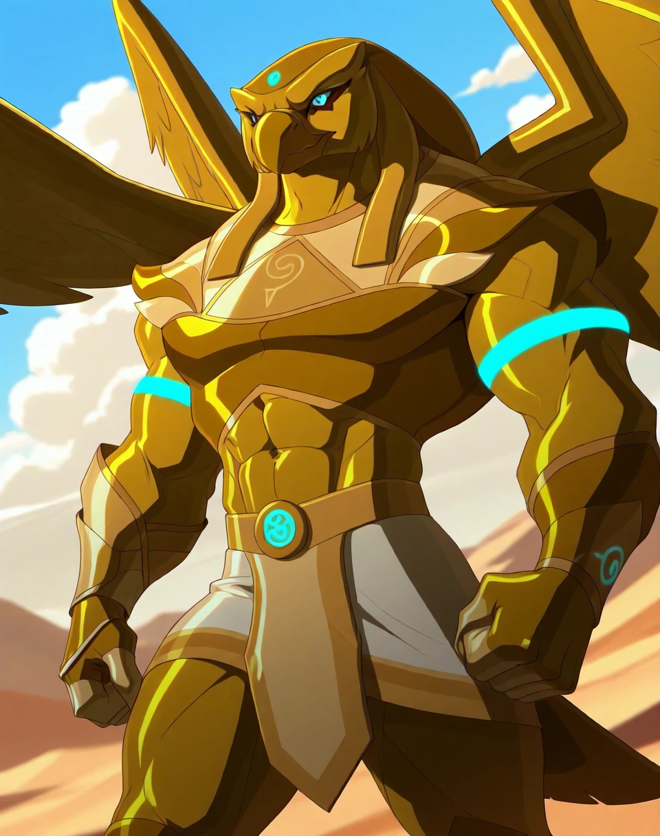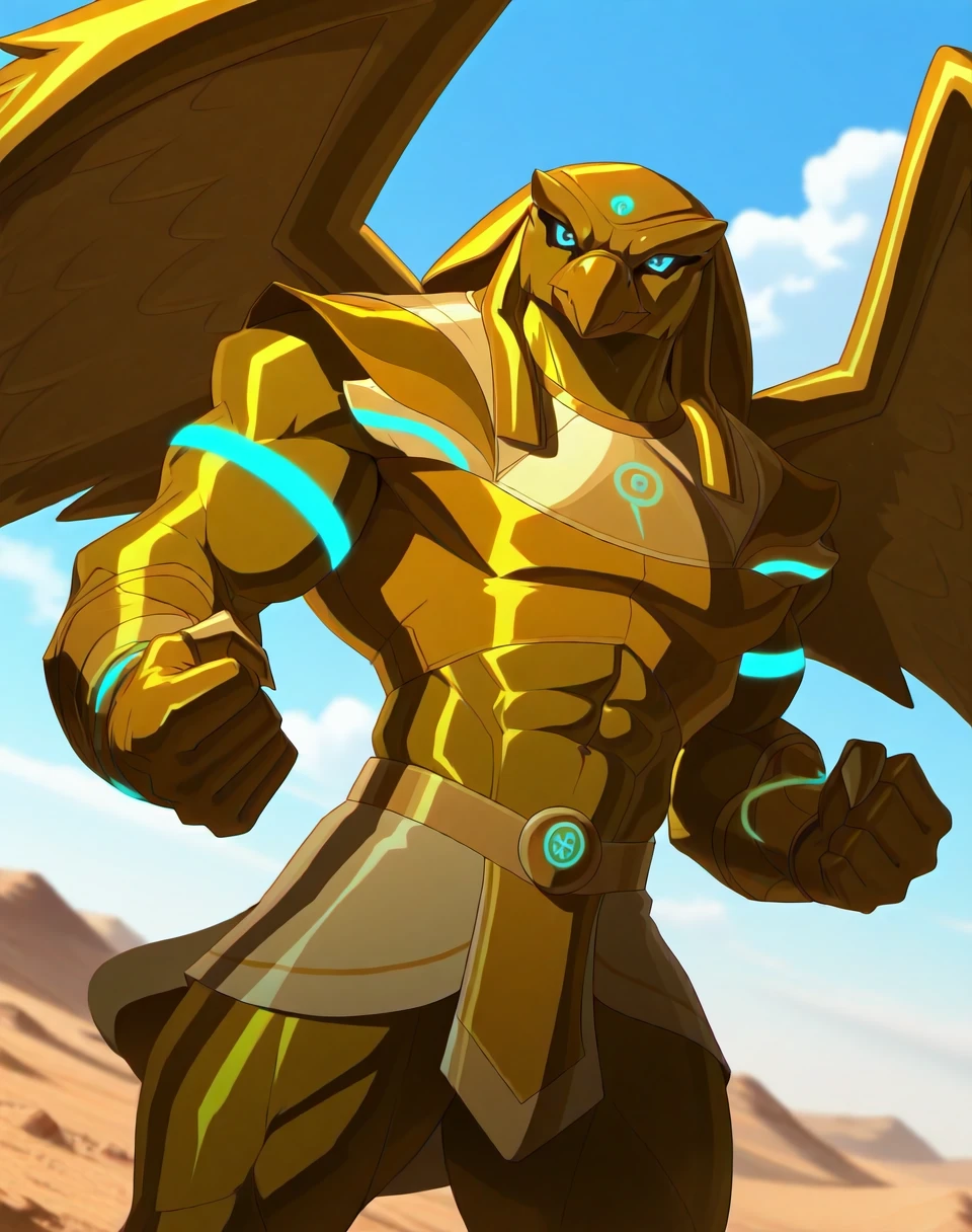 This is an Illustrious lora for the character Horus from the cartoon Egyxos. Horus in the show is a hero on the side of the golden army in the land of Egyxos. This version of him is one where he is wearing his gold armor while in his powered up form.