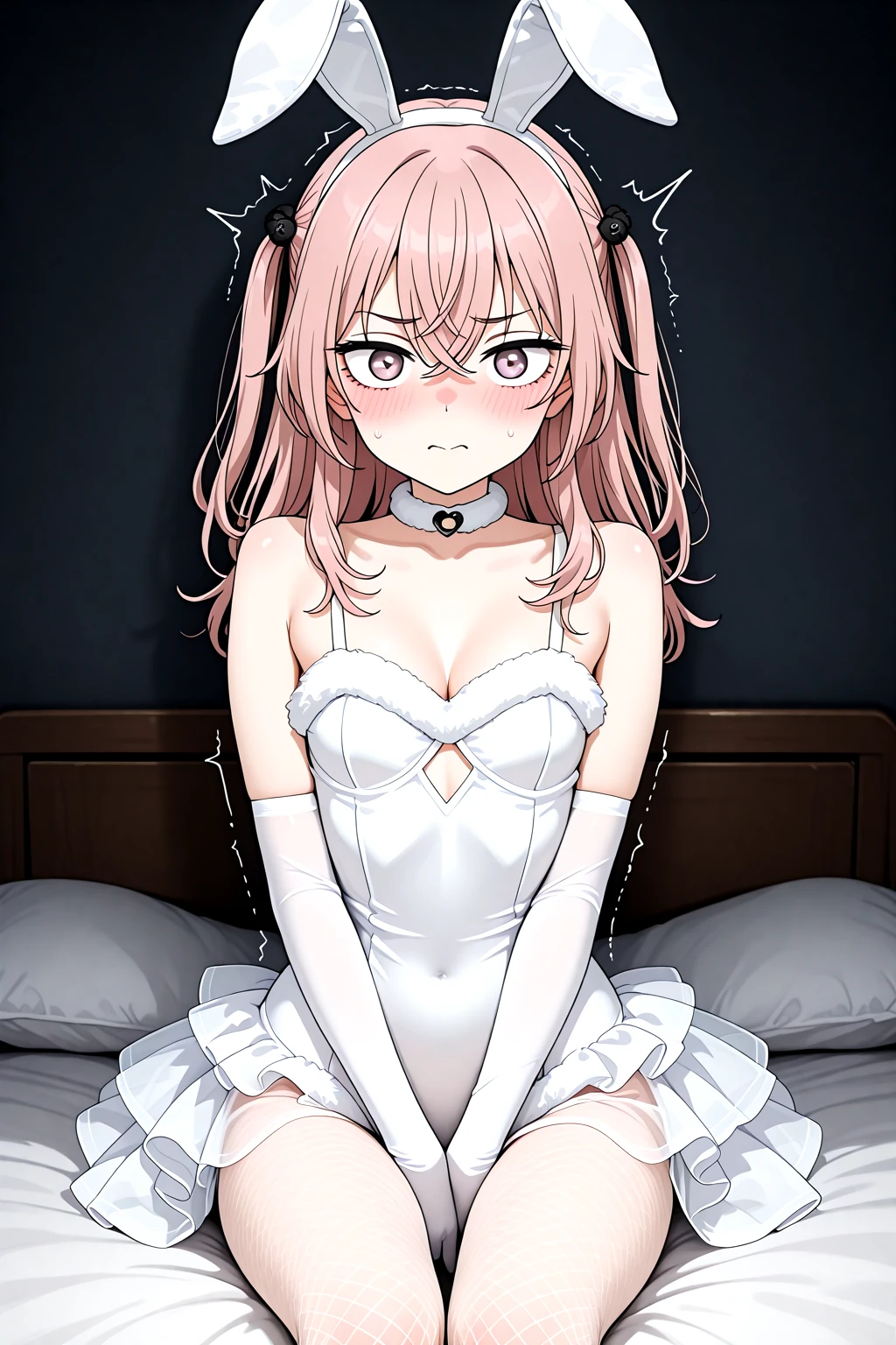 Bride_Bunny_Girl_Cos, fake animal ears, rabbit ears, playboy ?????, fur trim, skirt, back skirt, leotard, white leotard, ???? shoulders, choker, fishnet pantyhose, white gloves, elbow gloves, cleavage, cleavage cutout, see-throughrecommended weight: 1.1