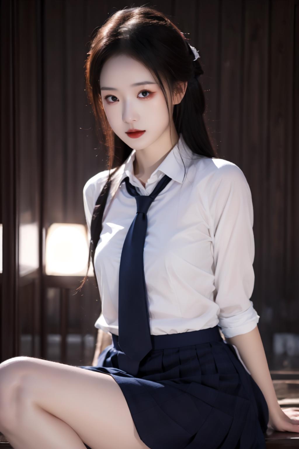 Guofeng女孩,中国风,端庄美丽的成熟女生,精致美丽的妆容,身穿简约飘逸的汉服长衫。