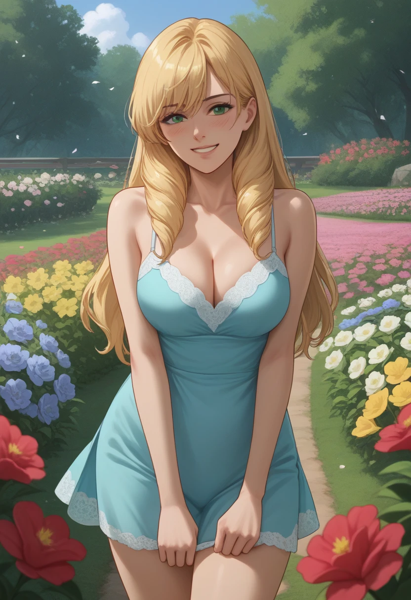 Hyouga Megumi, Blonde Hair, Long Hair, Drill Hair, Green Eyes, Cleavage,