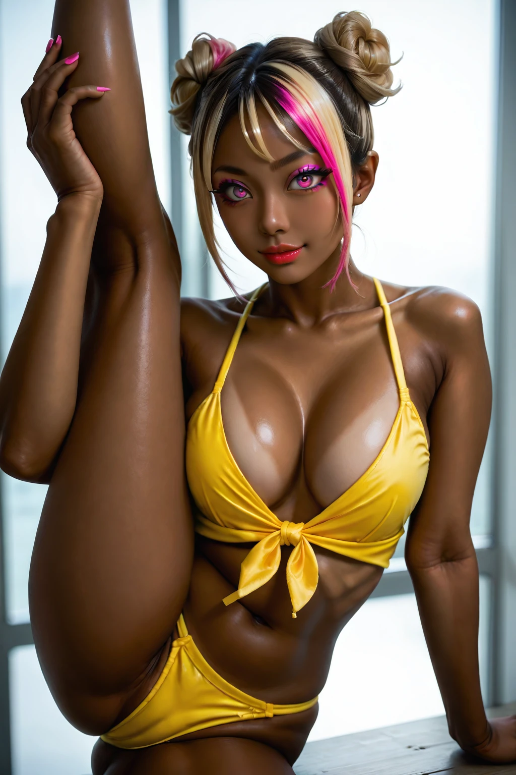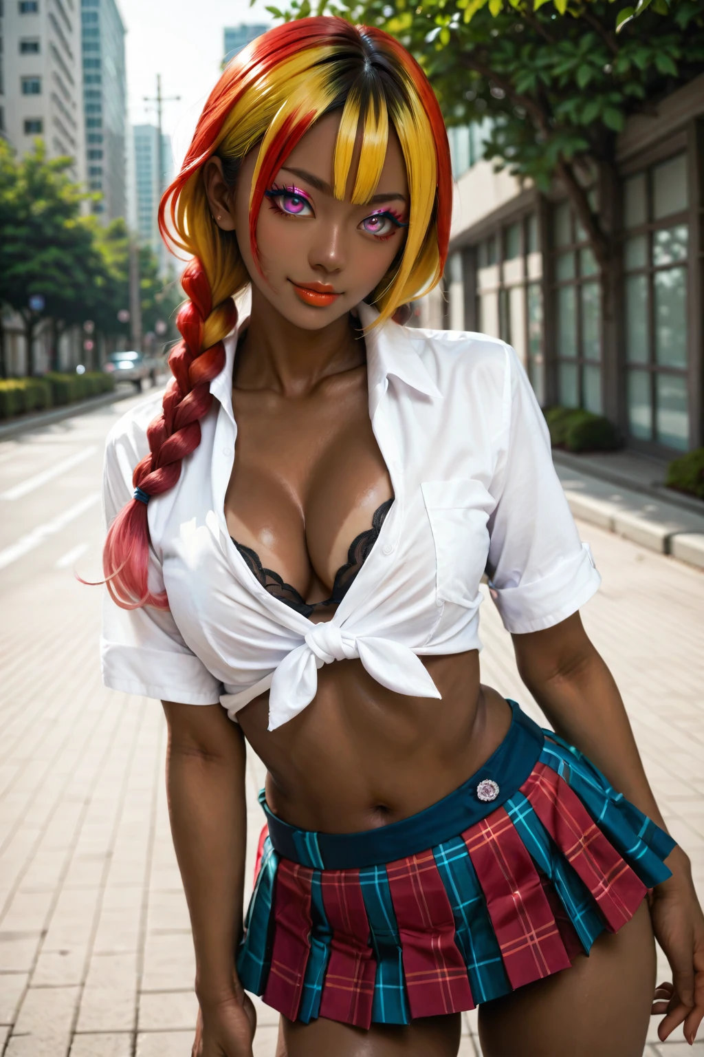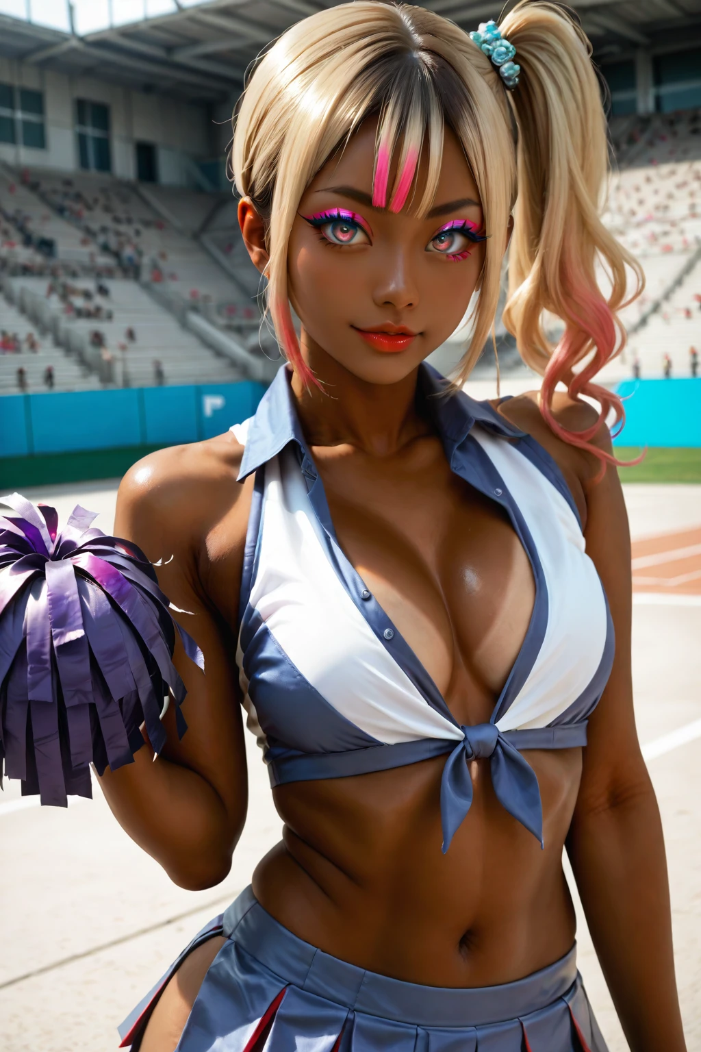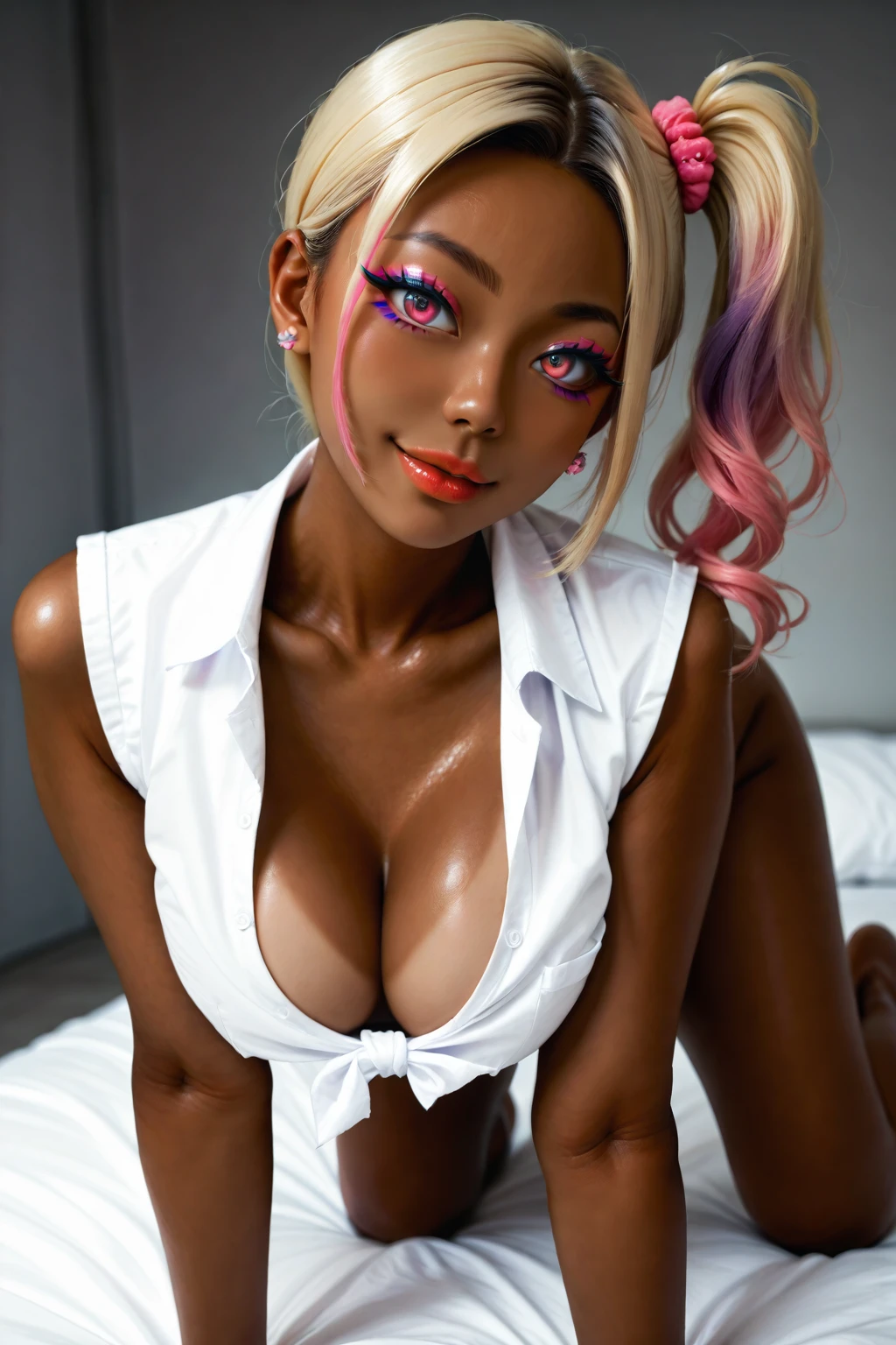 <lora:TanskinGyaru_Pony_v11e12:0.8>,tanned skin,gyaru,dark-skinned female,makeup,naughty face,