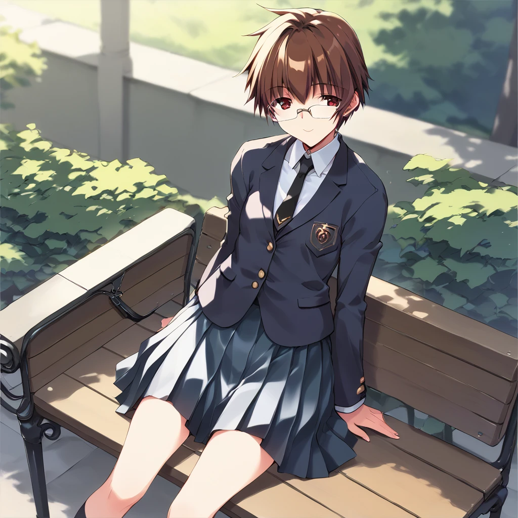 kaguraizumi, brown hair, short hair, red eyes