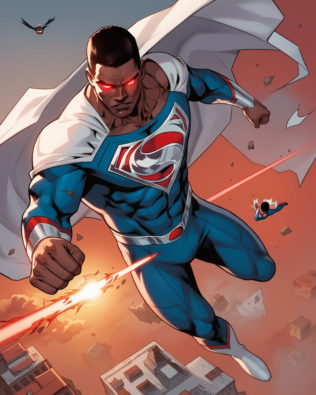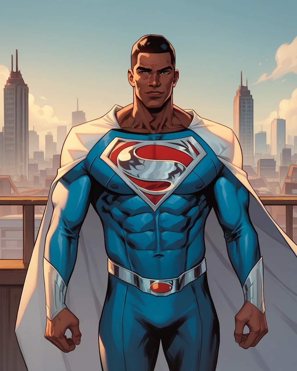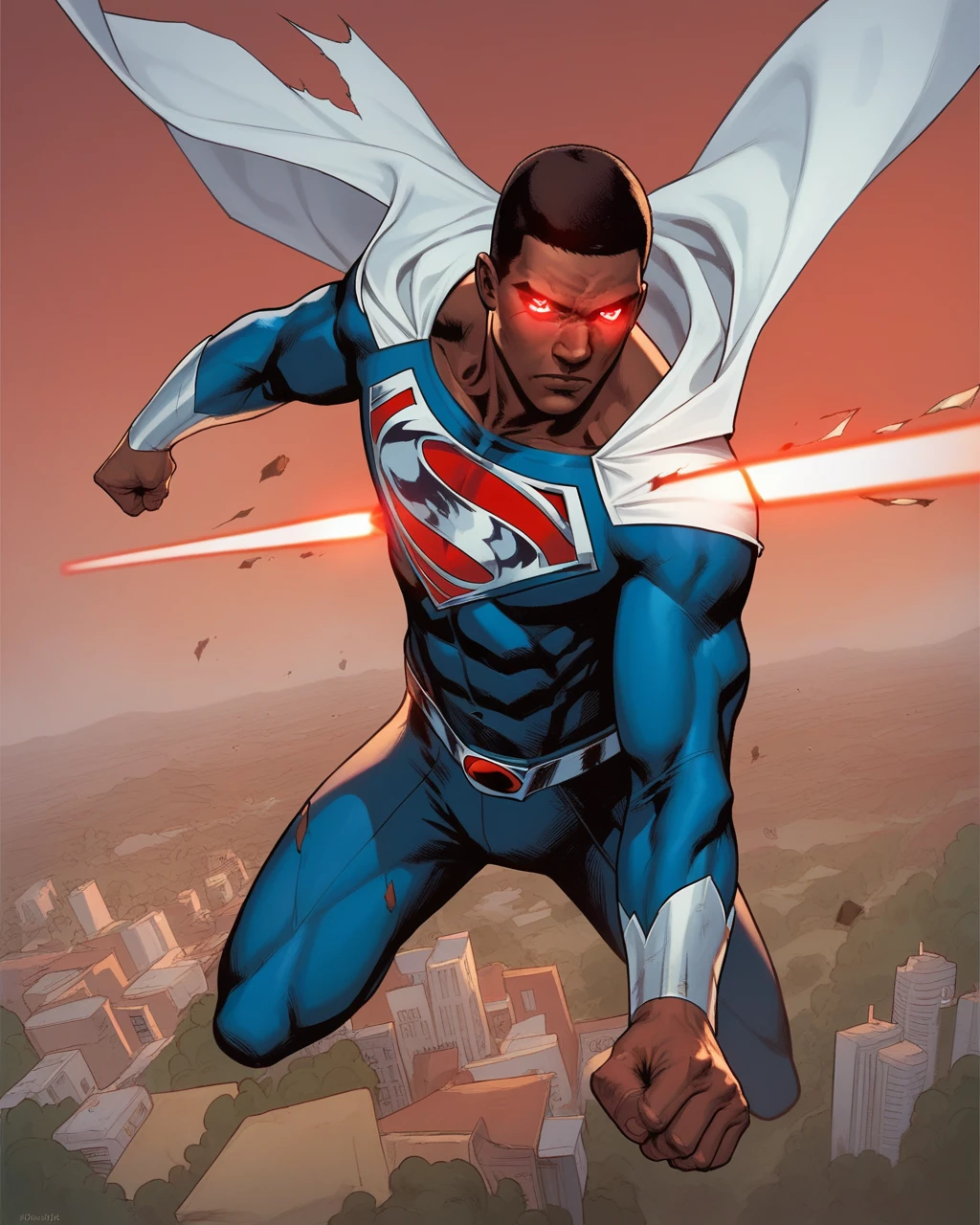 val zod, 1boy, dark-skinned male, blue eyes, muscular, superhero, cape,