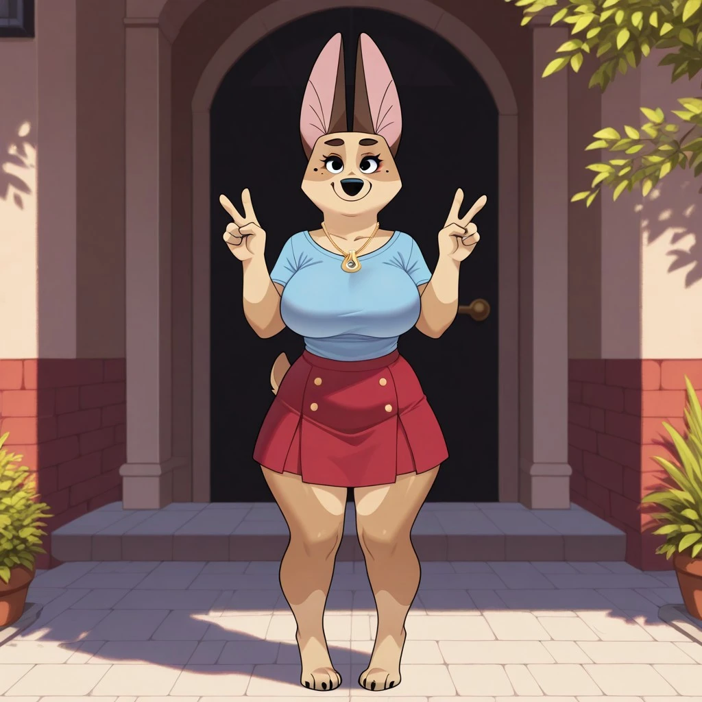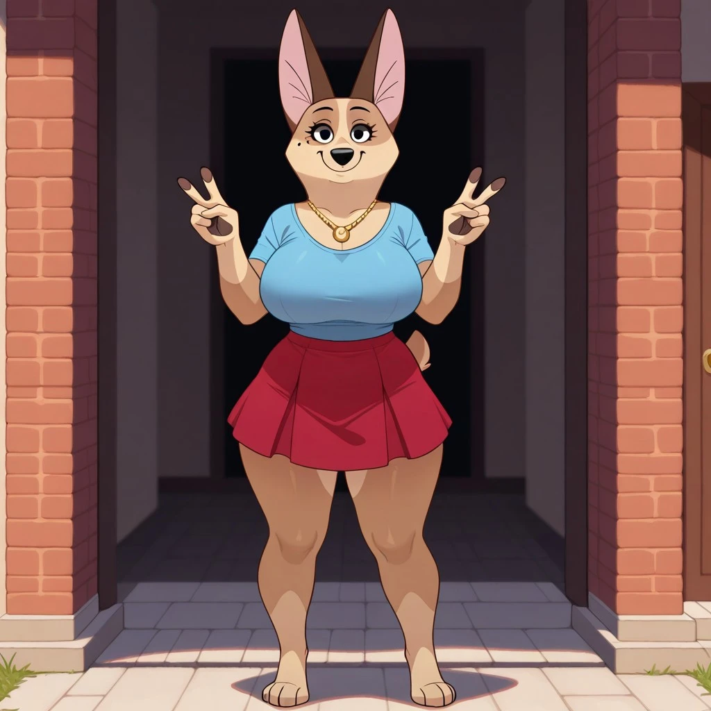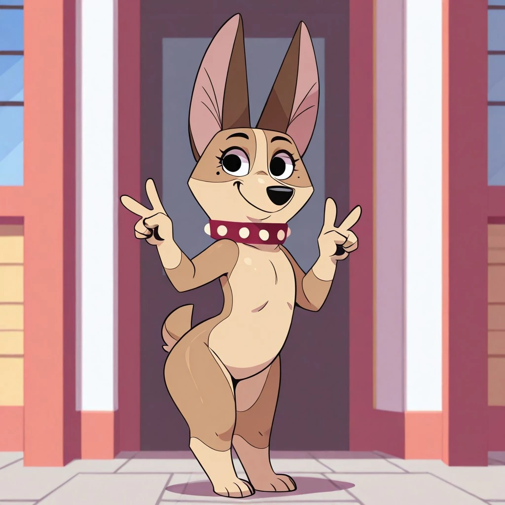 dog, Welsh Corgi, tan fur, brown ears, black eyes, mole under eye, black nose, short tail, red collar,