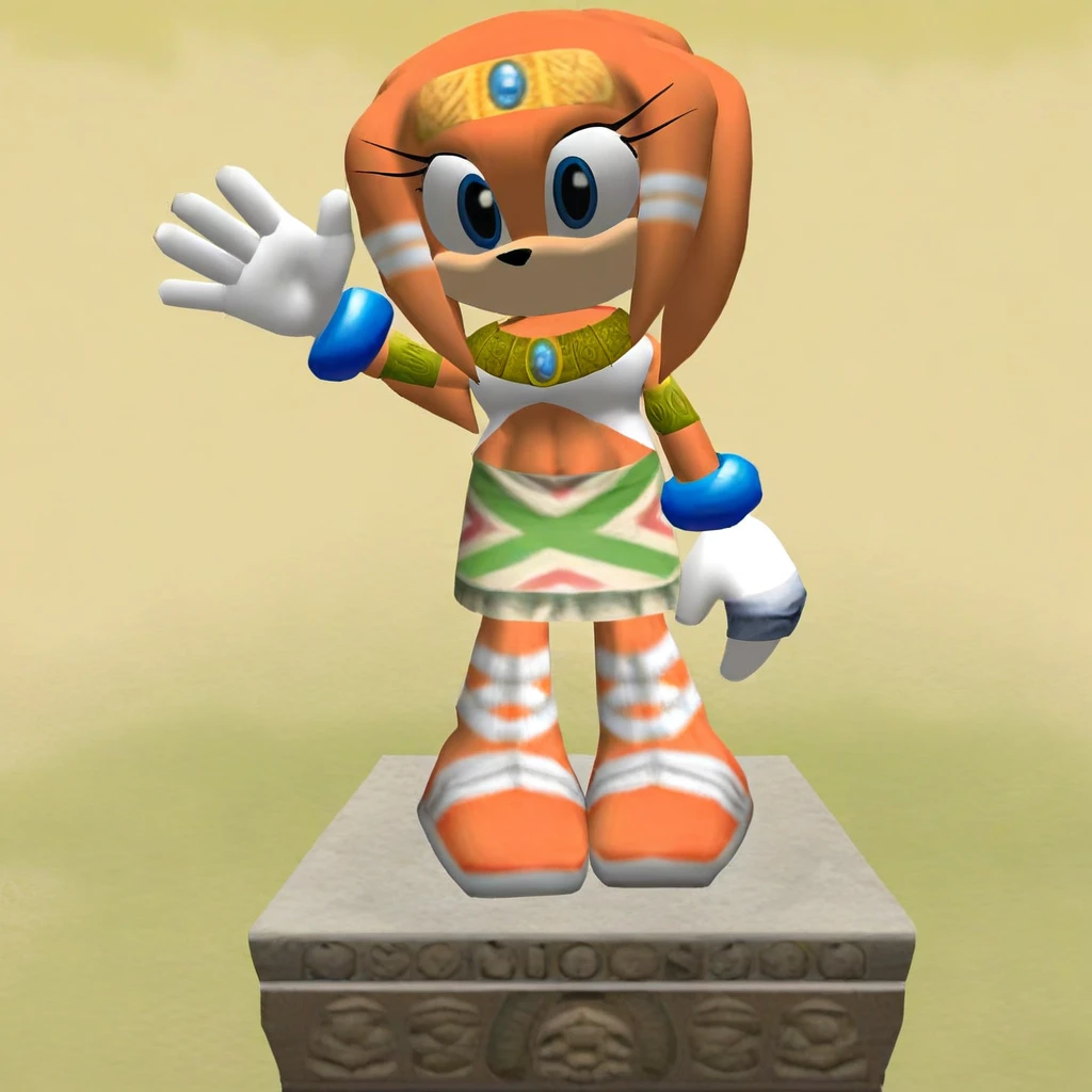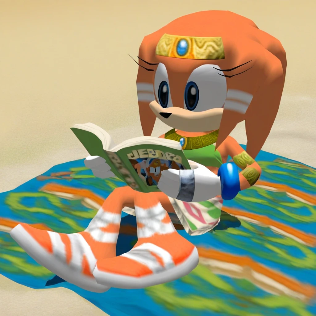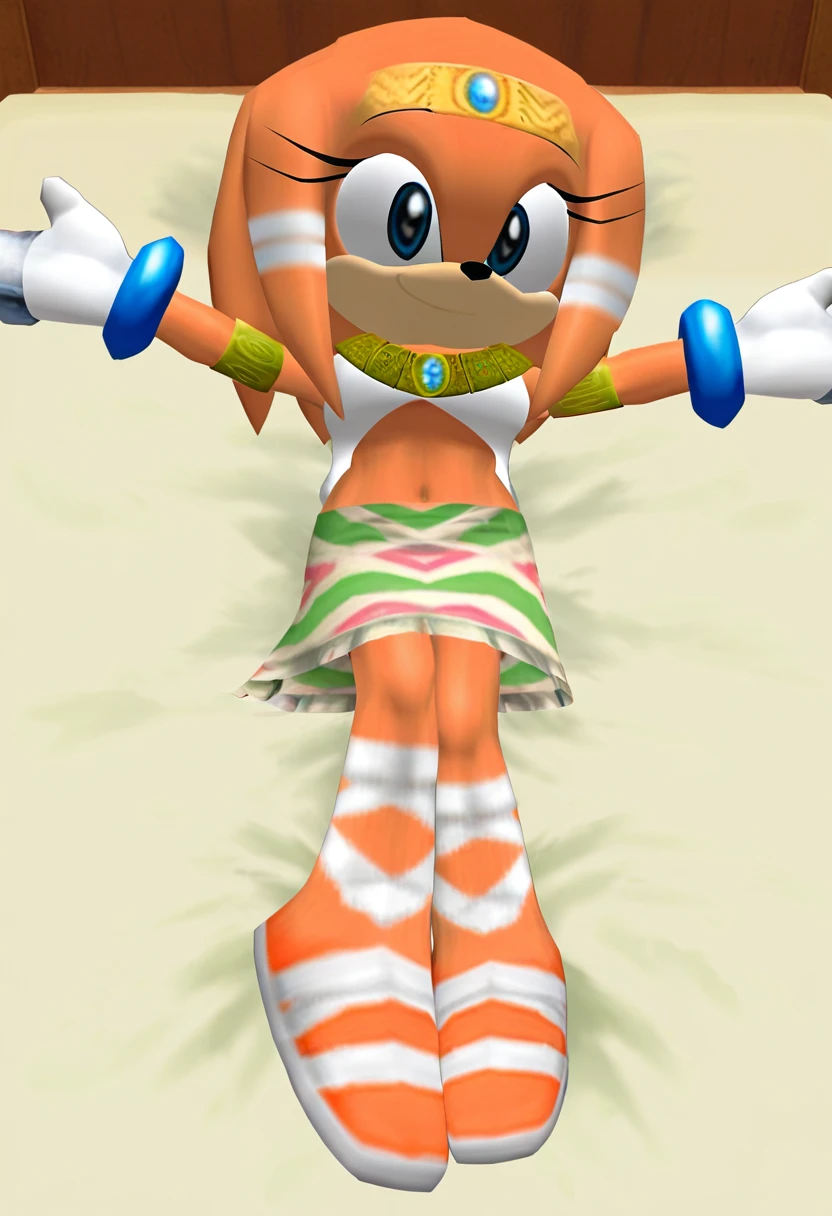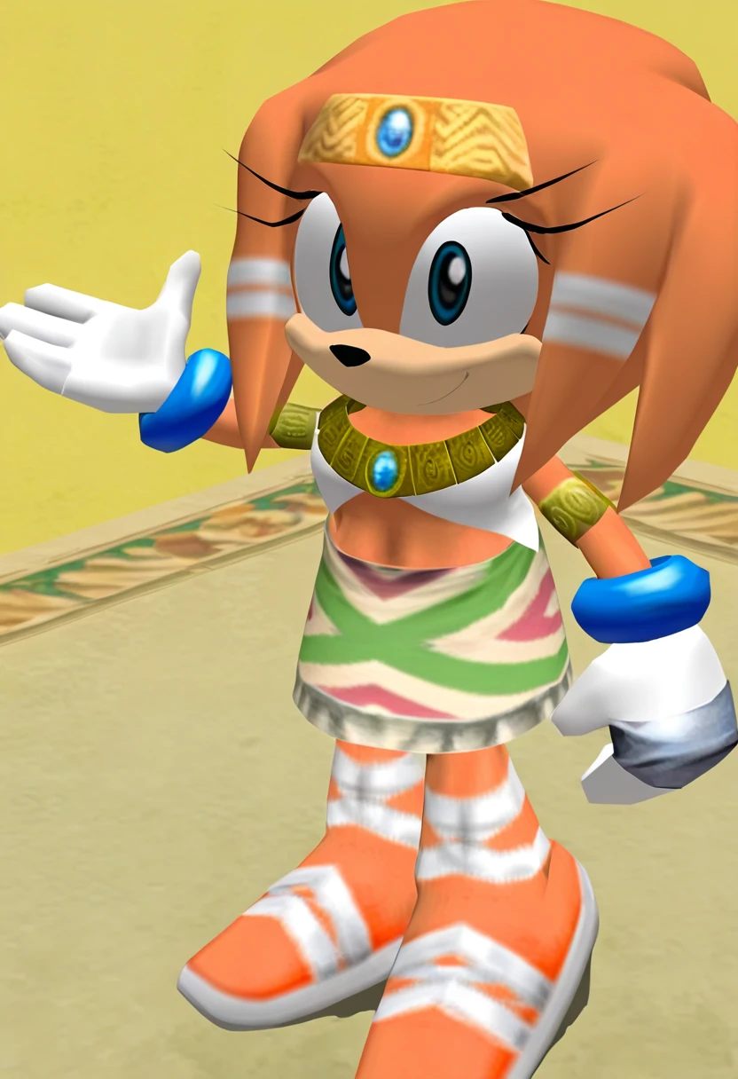 Tikal#SA1,Tikal,Blue Eyes,green tribal skit,white crop top,jewlery,bracelets.furry girl,anthro echidna,animal face,animal nose,