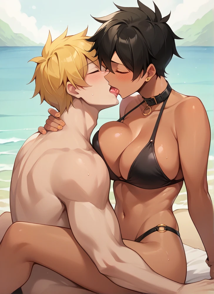 KurobeTomboy, dark-skinned female, large breasts, black hair,