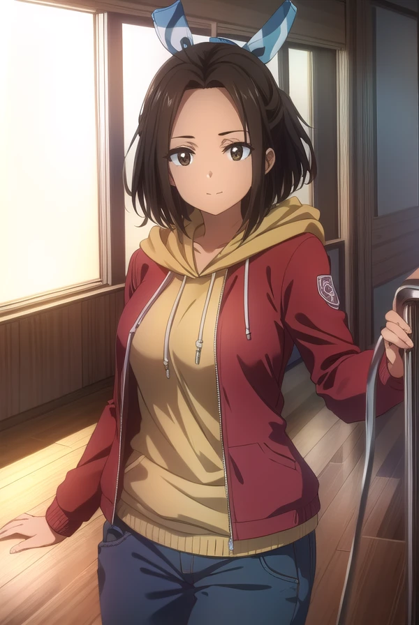 jacket, pants, hood, hoodie, (red jacket:1.3),
