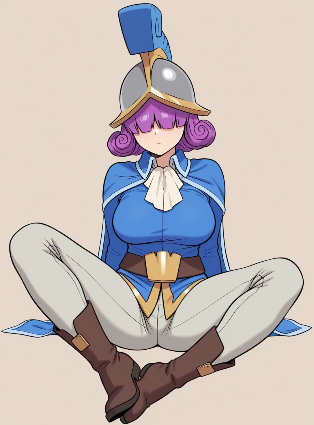 cr musketeer three, purple hair, curly hair, (hair over eyes:0.75),
