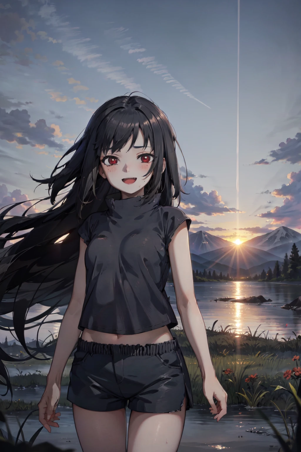Basic prompts : Nanashi Uchiha, 1girl, long hair, black hair, best quality