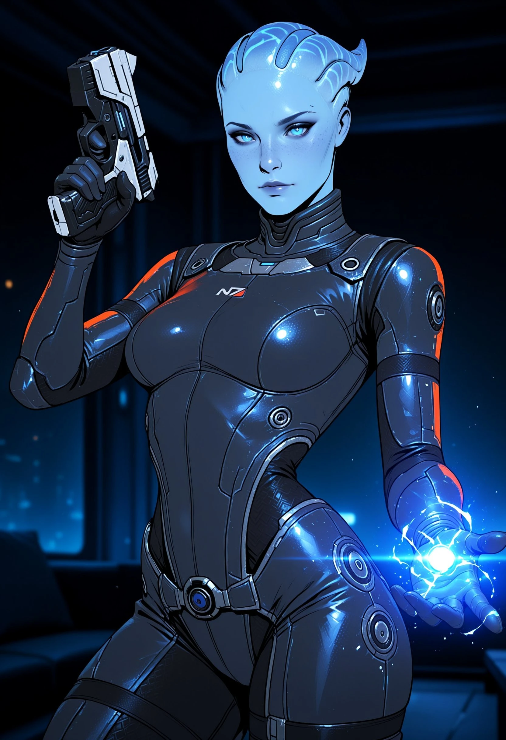 I've had Mass Effect on the brain lately so I thought I'd make a LoRA for some of the N7 outfits. There are 3 options in this lora, armor, bodysuit, and hoodie. The LoRA has a stronger affect on art styles than I'd like and the N7 logo isn't always perfect but I've been getting some nice results so I thought I'd publish it.