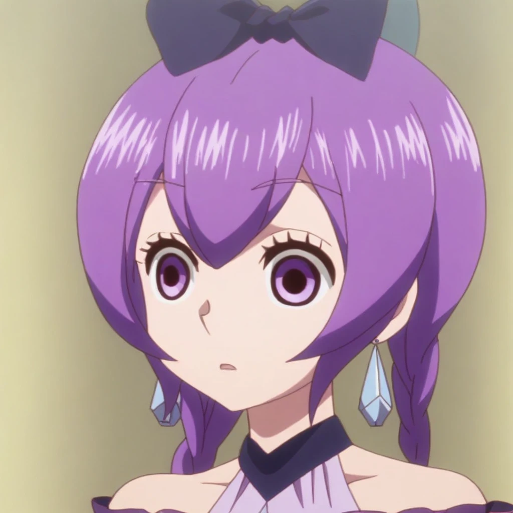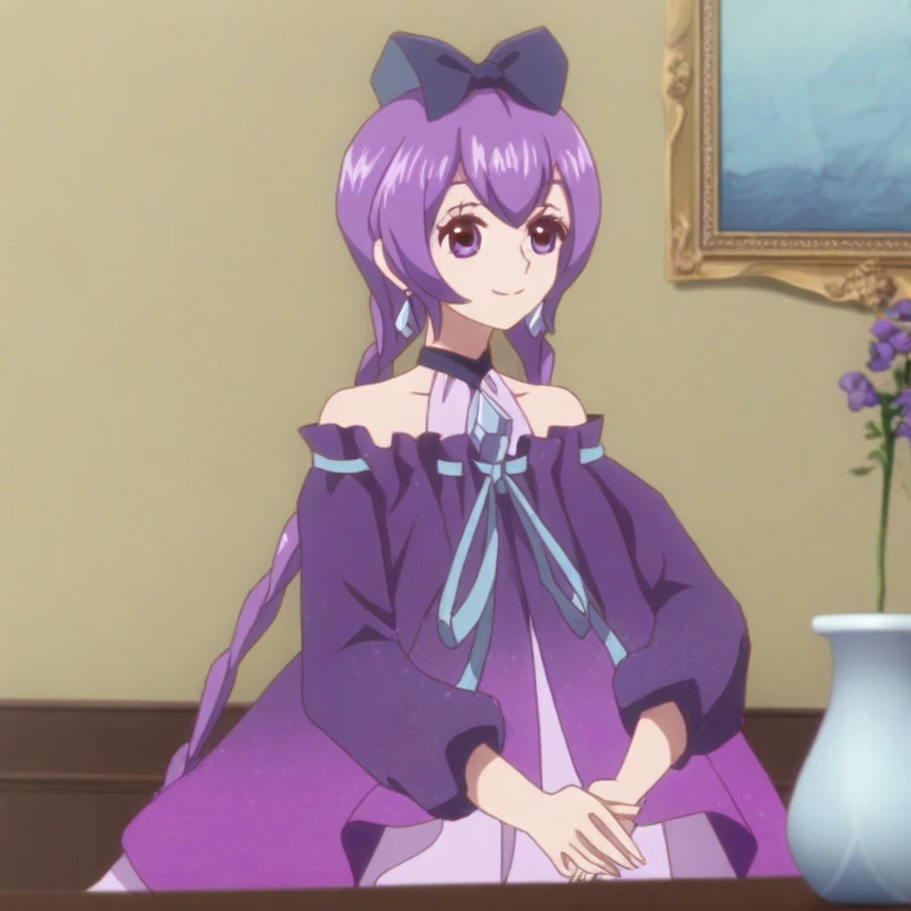 Mimico, purple hair, violet eyes, braid, twin braids, long hair, very long hair, 1girl, solo