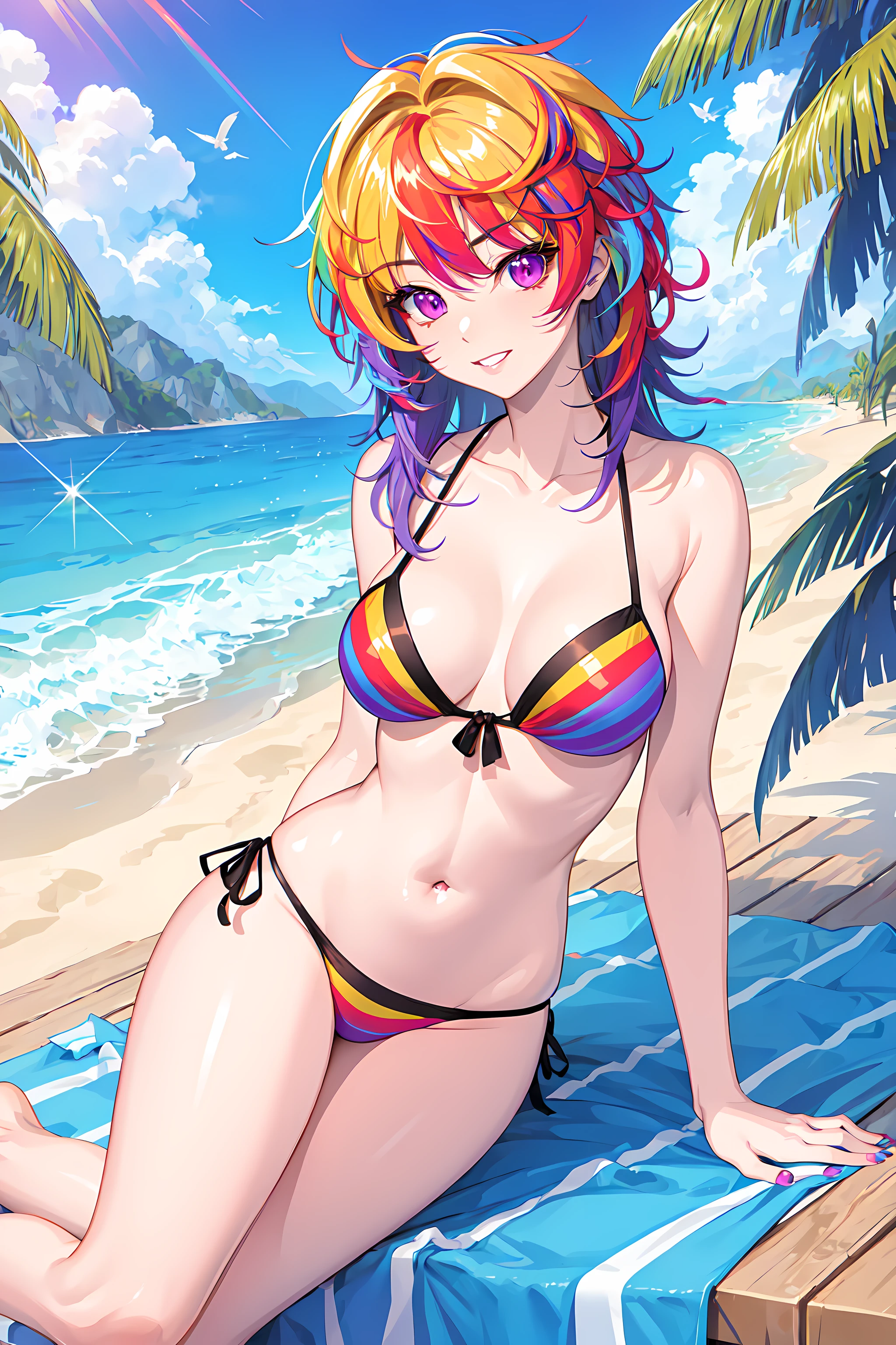 Trigger words: iro, 1girl, solo, multicolored hair, rainbow hair, purple eyes