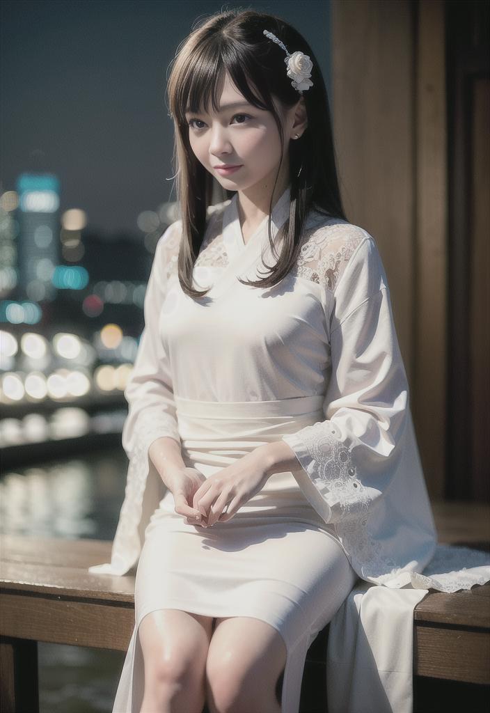 (8k, best quality, masterpiece:1.2), (realistic, photo-realistic:1.37), cute, night, dating, (nose blush), (smile:1.15), (closed mouth) small breasts, beautiful detailed eyes,, night, wet, rain, white lace, floating hair,1girl wearing tangstyle dress,<lora:hanfu2.8:0.9>,(hanstyle,hanfu:1.2)