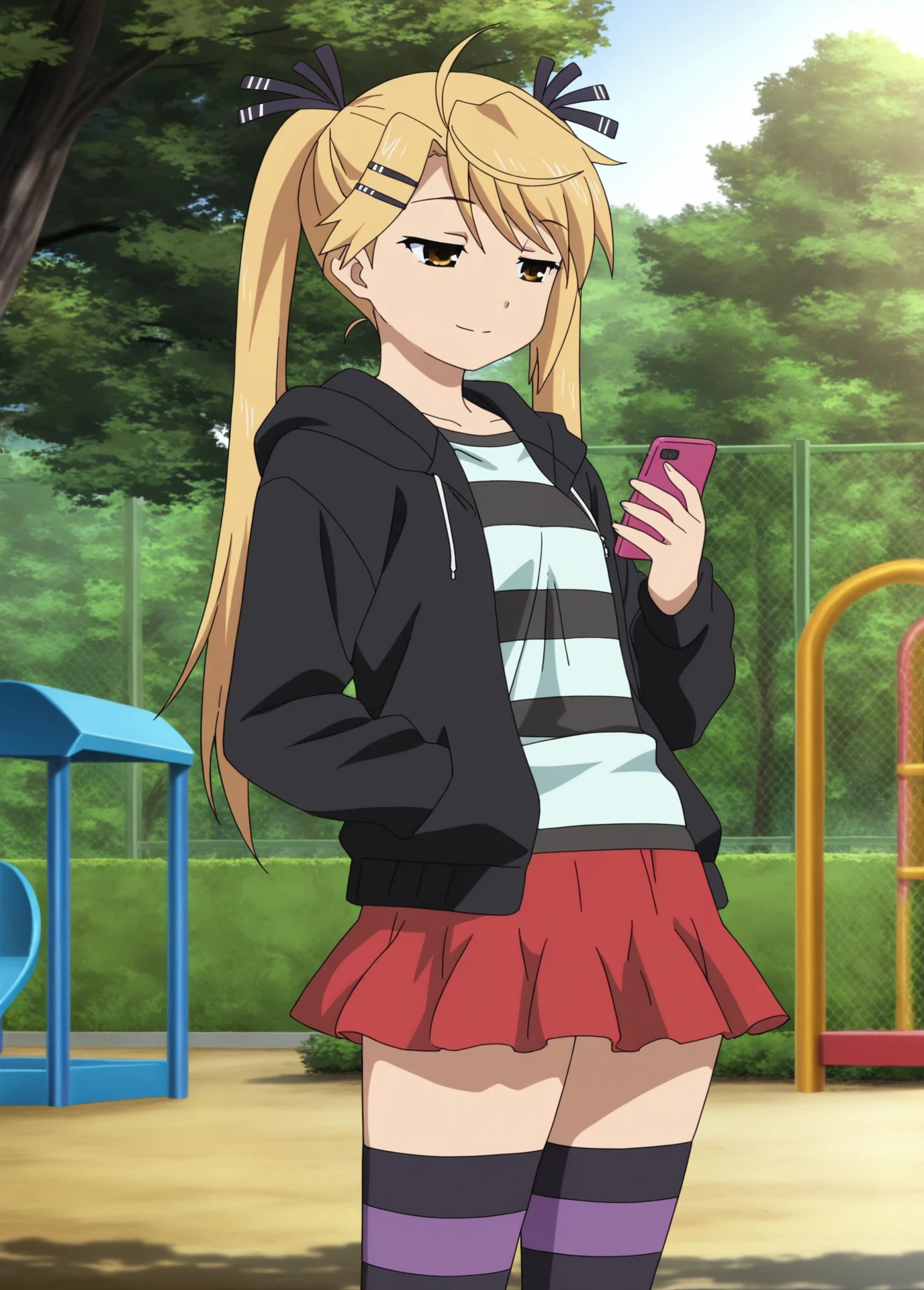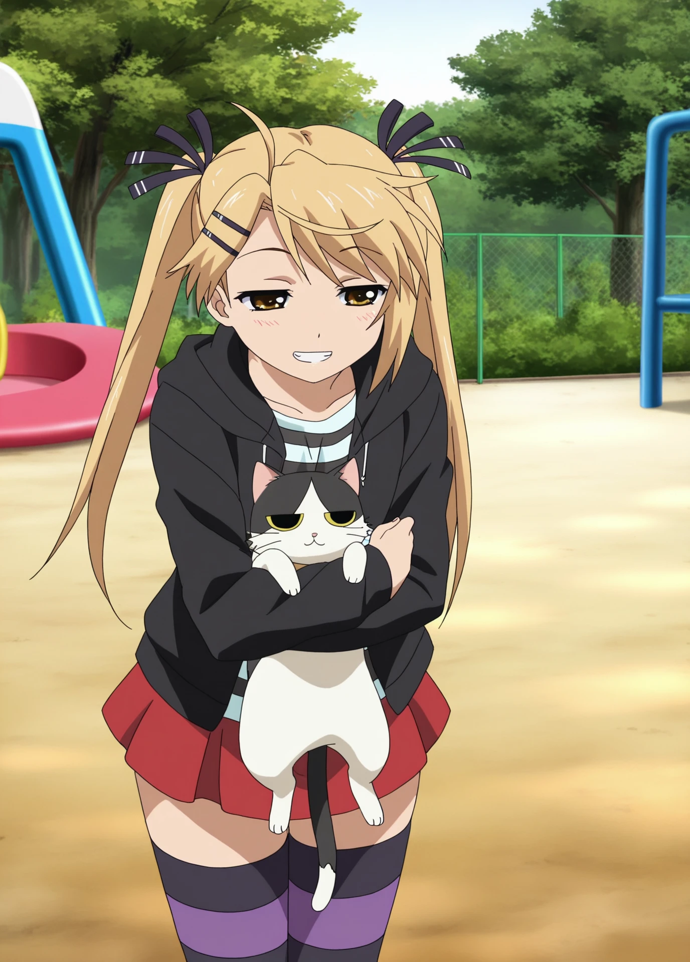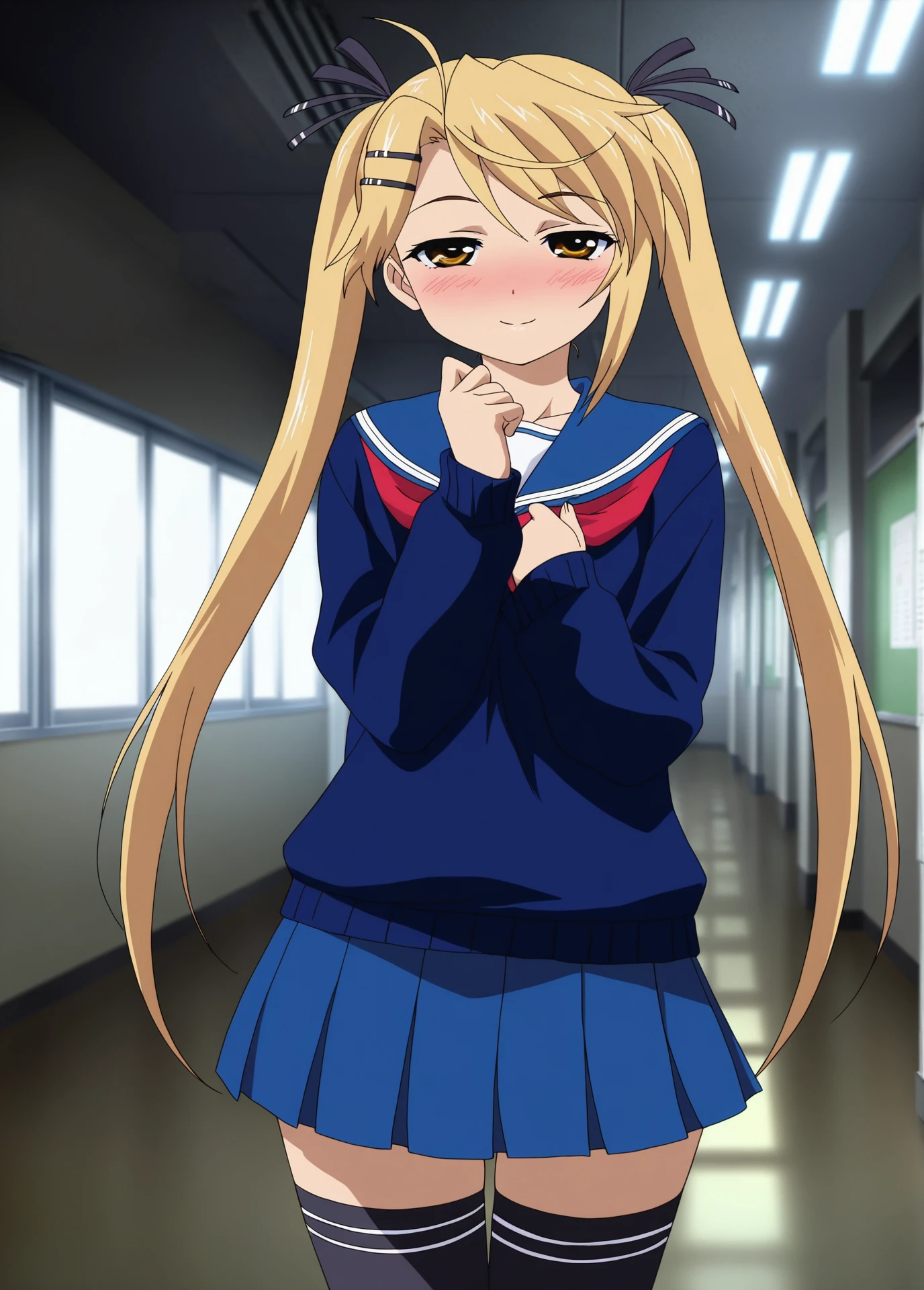 Kotone Kirishima, Nyan_koi!, anime_screencap, anime_coloring, young_female, blonde_twintails, brown eyes, small , hair clip, black_hair_ribbon,