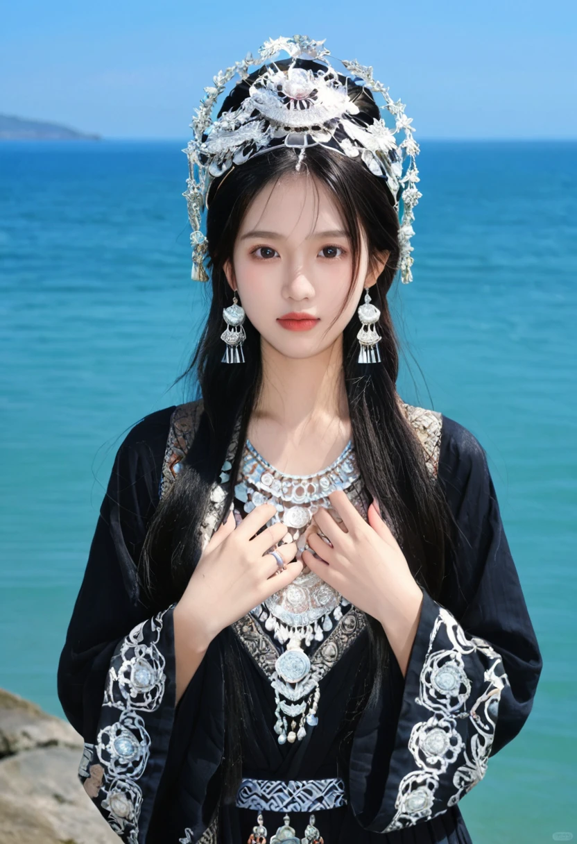 I have limited skills, so the characters are not very high-definition. Before training, I searched online and found that there are over 200 types of authentic Miao ethnic costumes, with silver accessories being a representative symbol for Miao women.