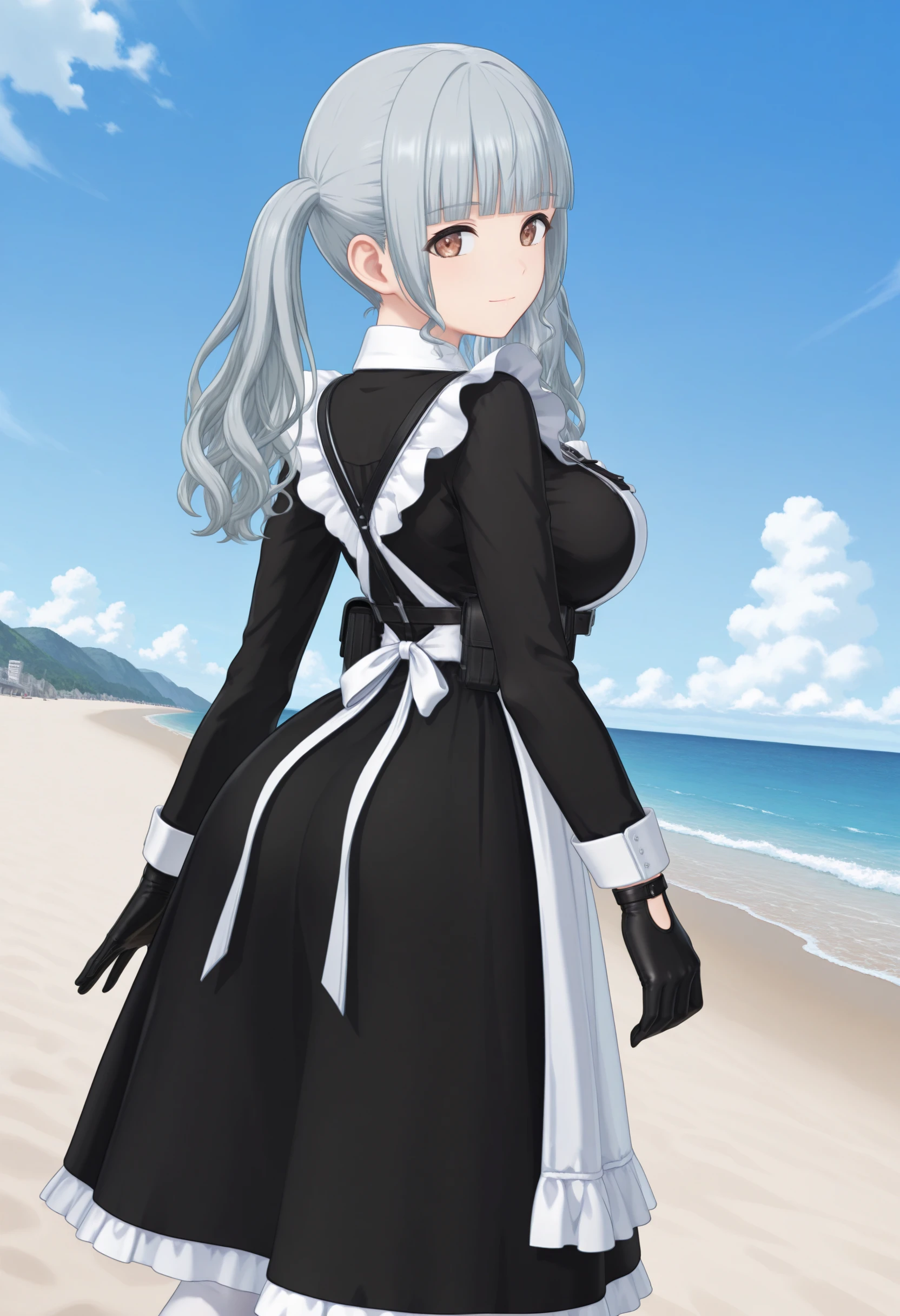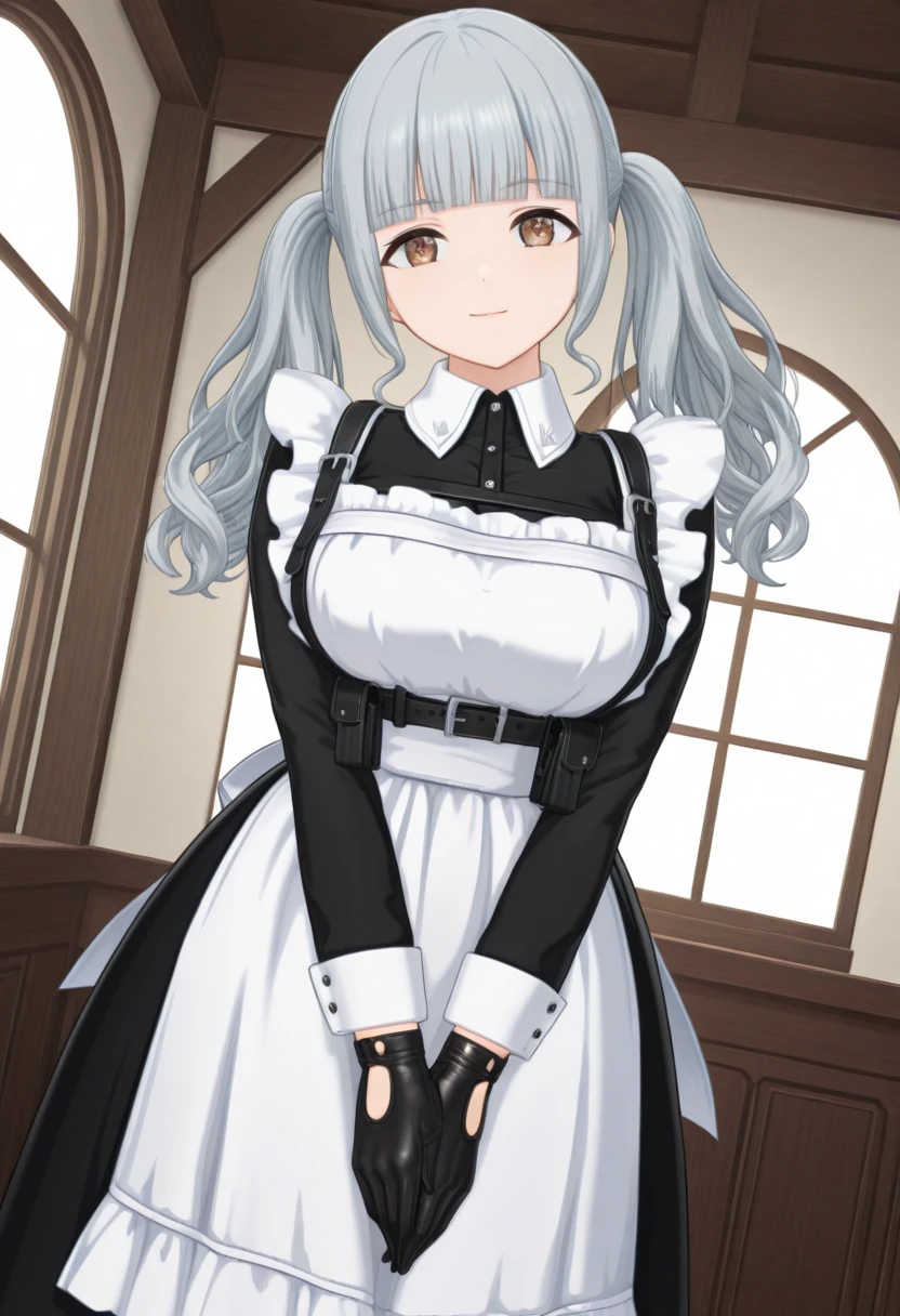 NagatoMei_Dolwv,brown eyes,grey hair,blunt bangs,sidelocks,long hair,wavy hair,twintails,large breasts