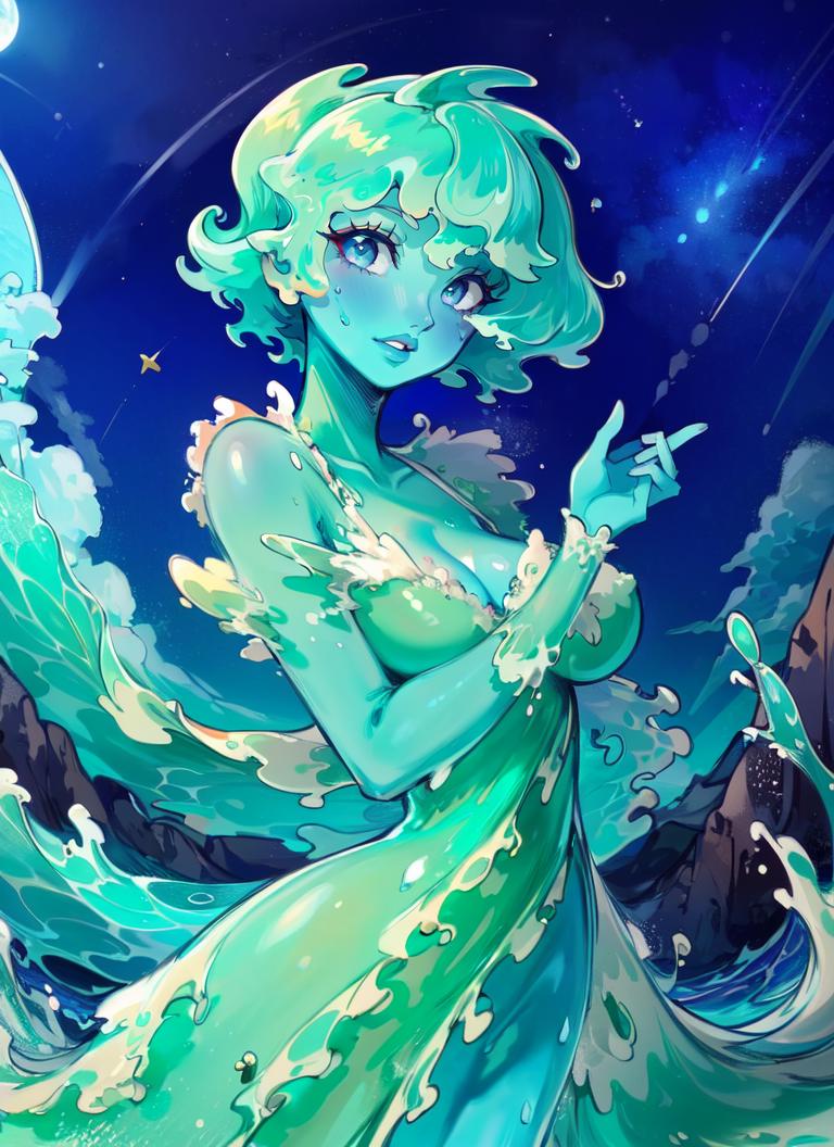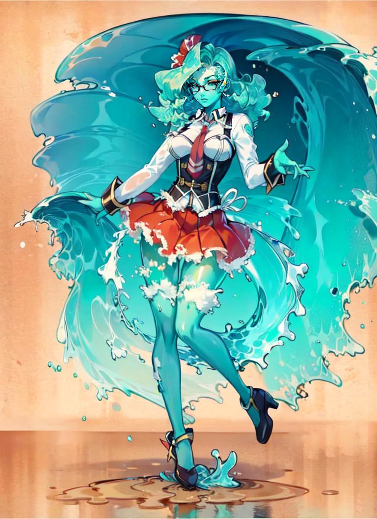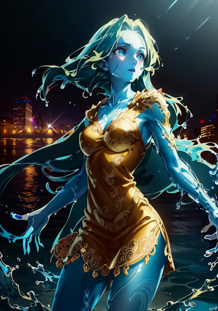 This model is a continuation of the series (elements) where we can make incredible elemental girls, its one of my favorite works. Basically it transforms your characters into Water in a more exaggerated way, unlike using only prompts. The model is mostly trained with images of girls, so it will be easier to create water girls.