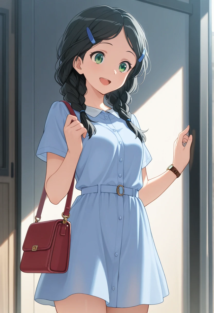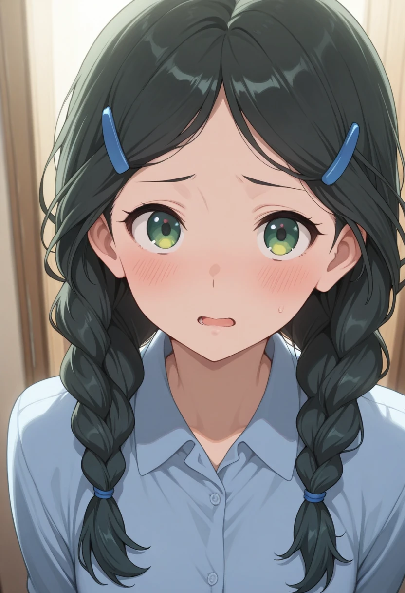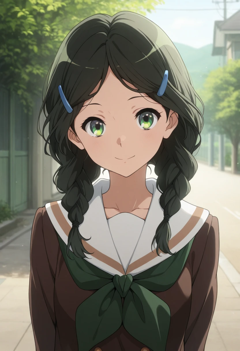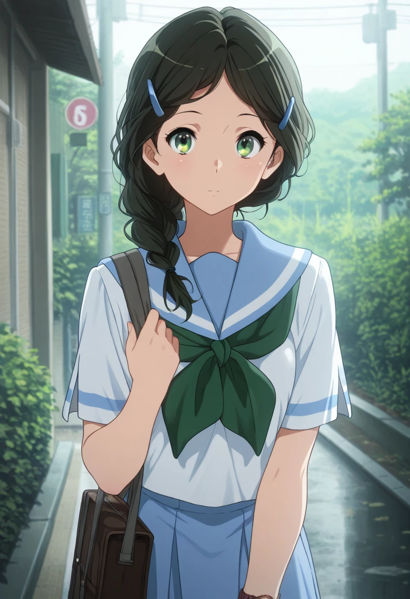 Trigger Words: saitou aoi, black hair, green eyes, braid, long hair