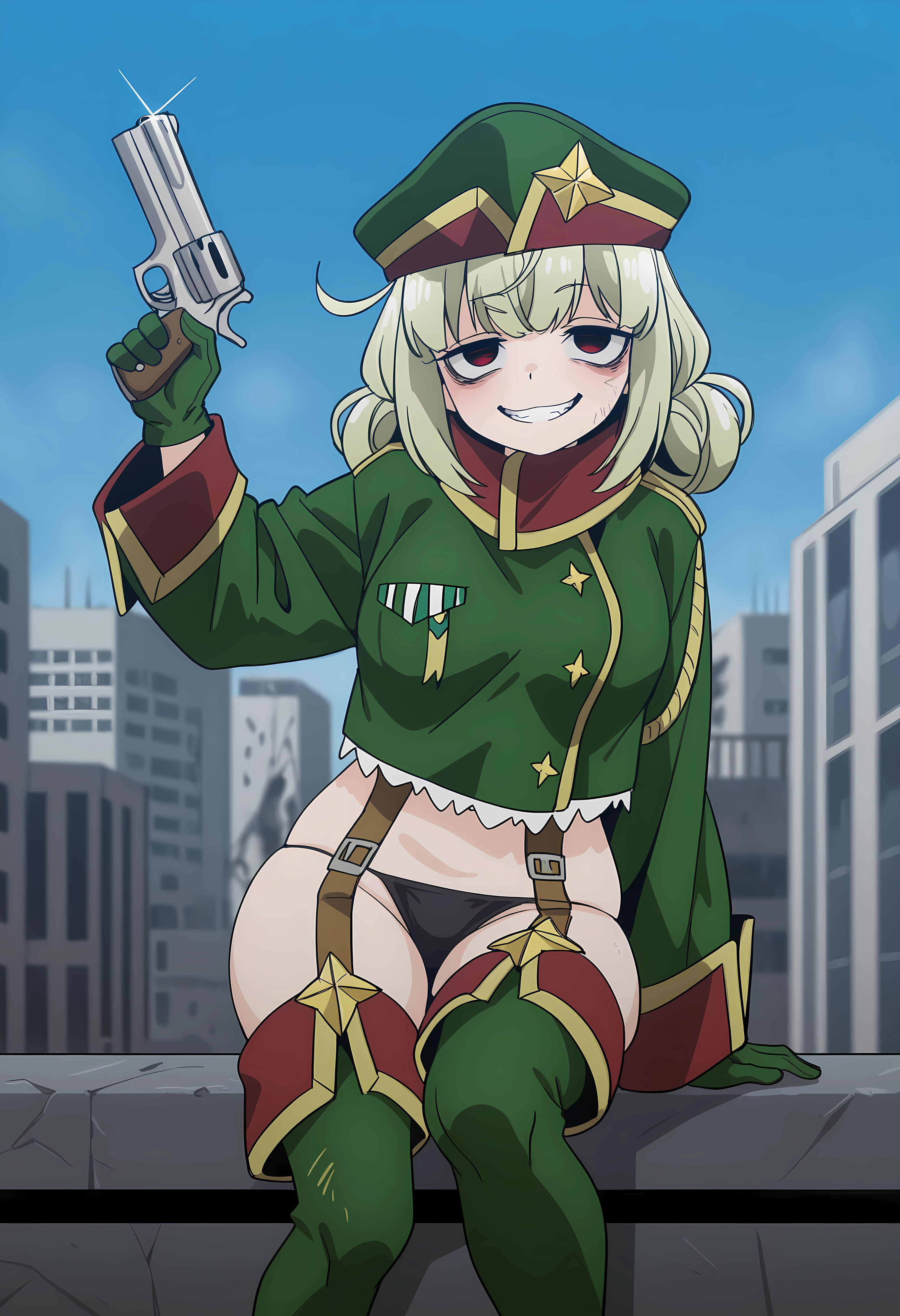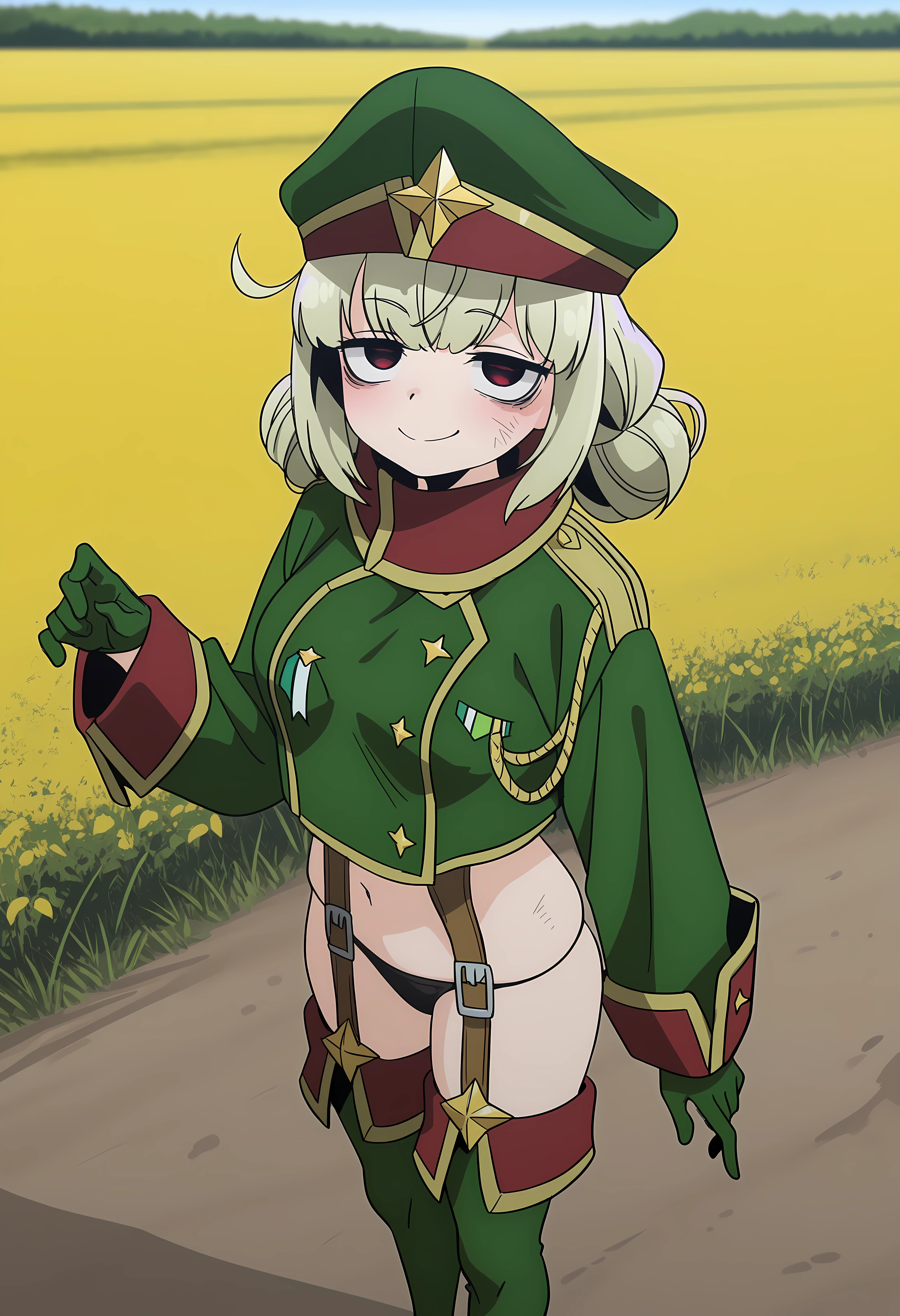 Leopard outfit: military hat, military uniform, black panties, black panties, belts, green gloves, green high boots,