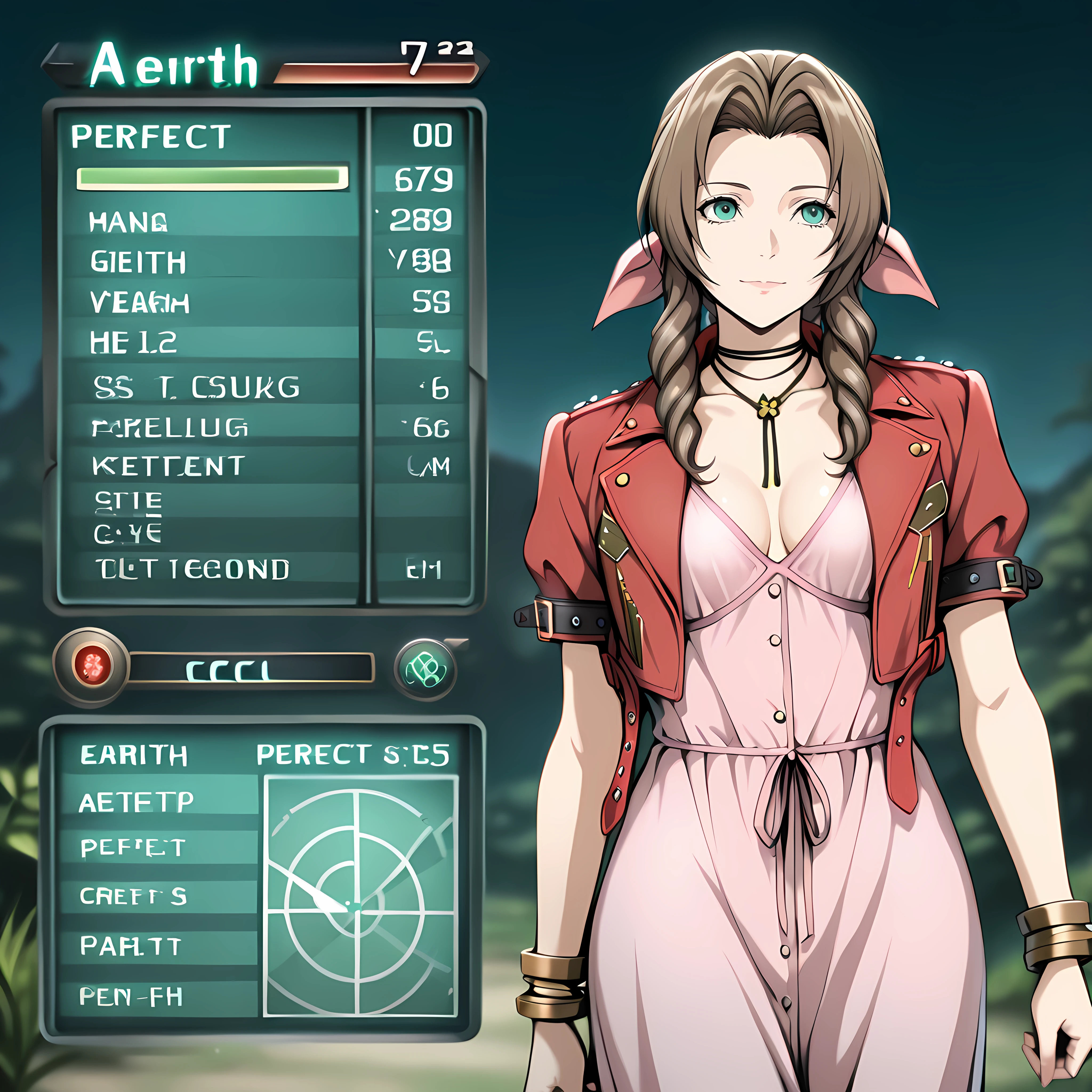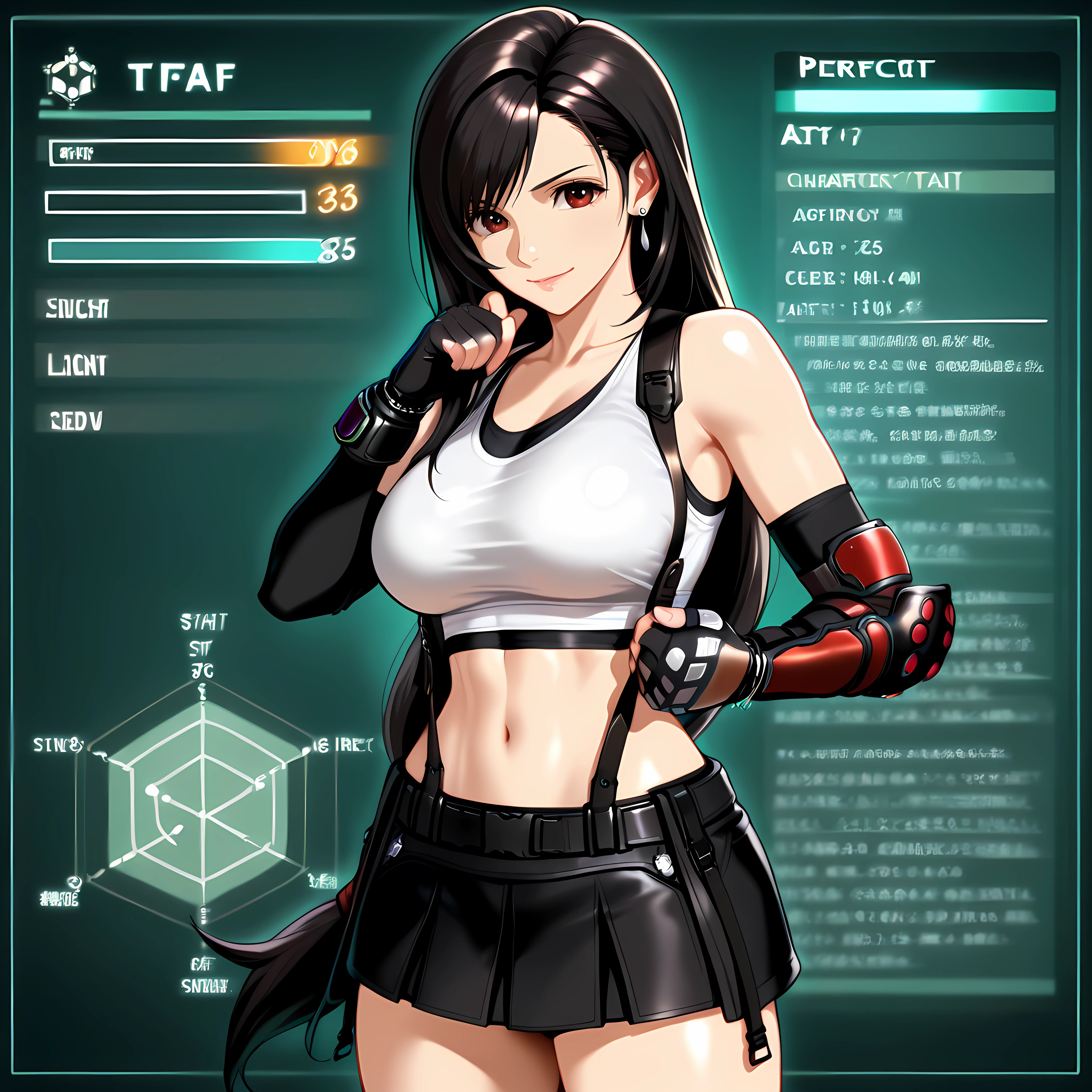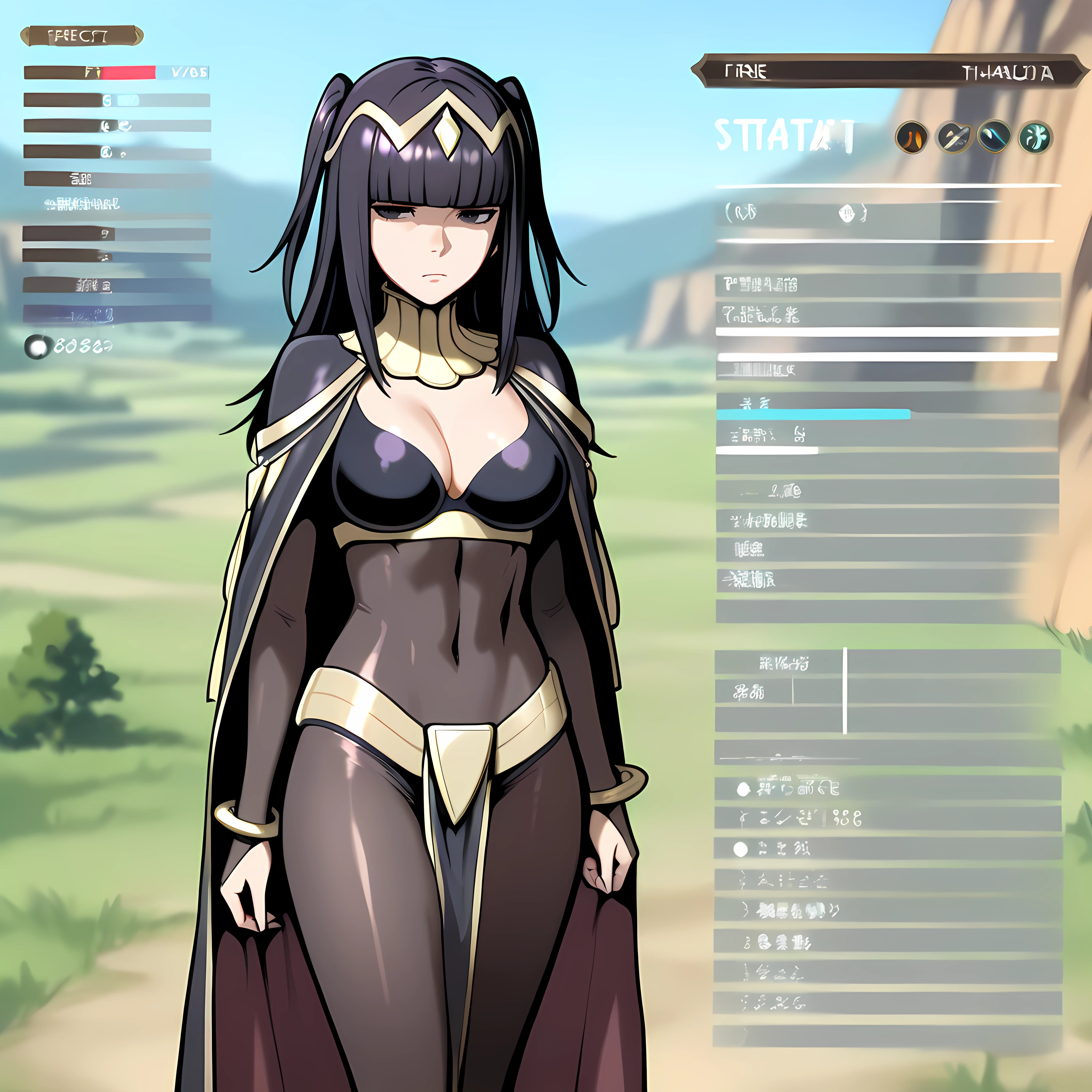 english text, textbox, character profile, gameplay mechanics, fake screenshot, radar chart, status bar