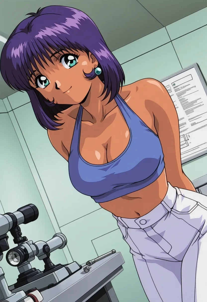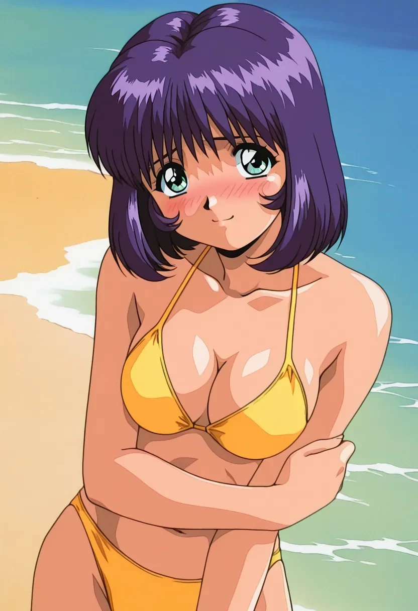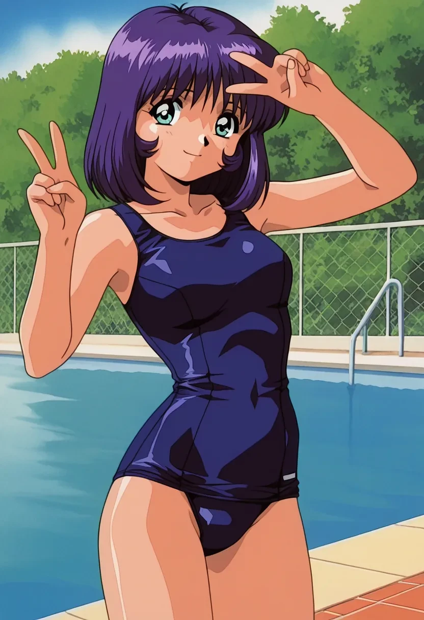 Fujisawa Ako, purple hair, short hair, green eyes, blue hair, aqua eyes,