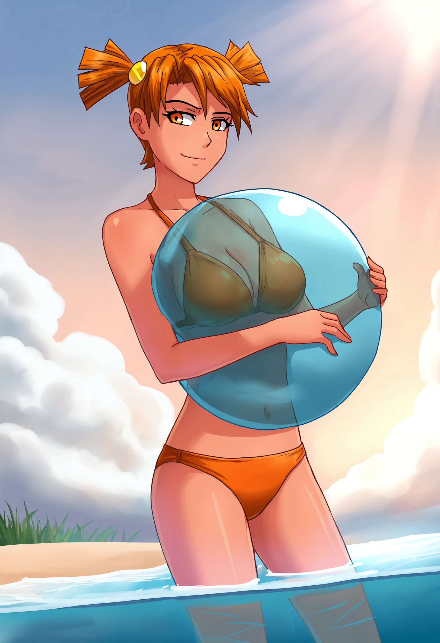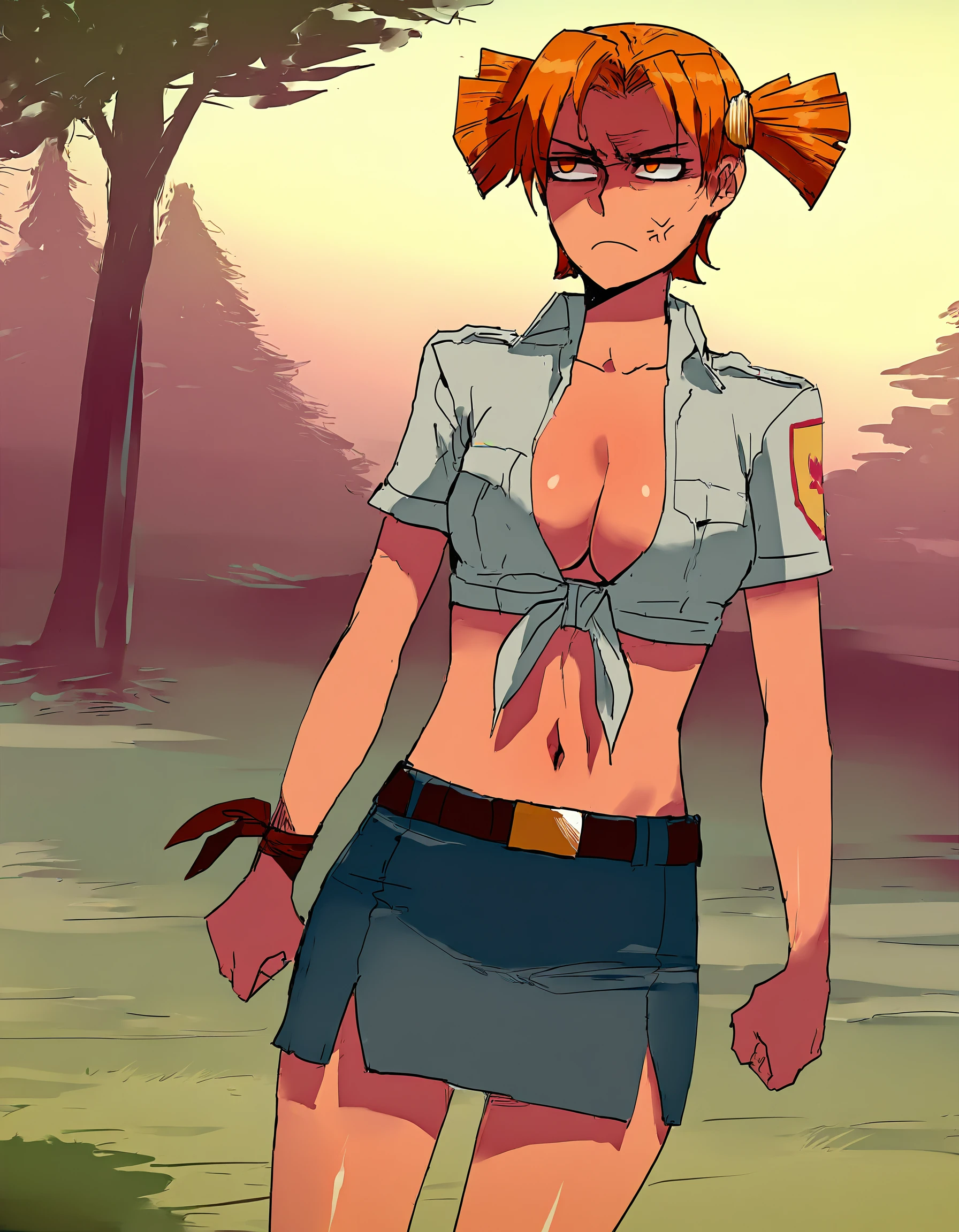 AliceDV, short hair, short twintails, orange hair, orange eyes, hair ornament.