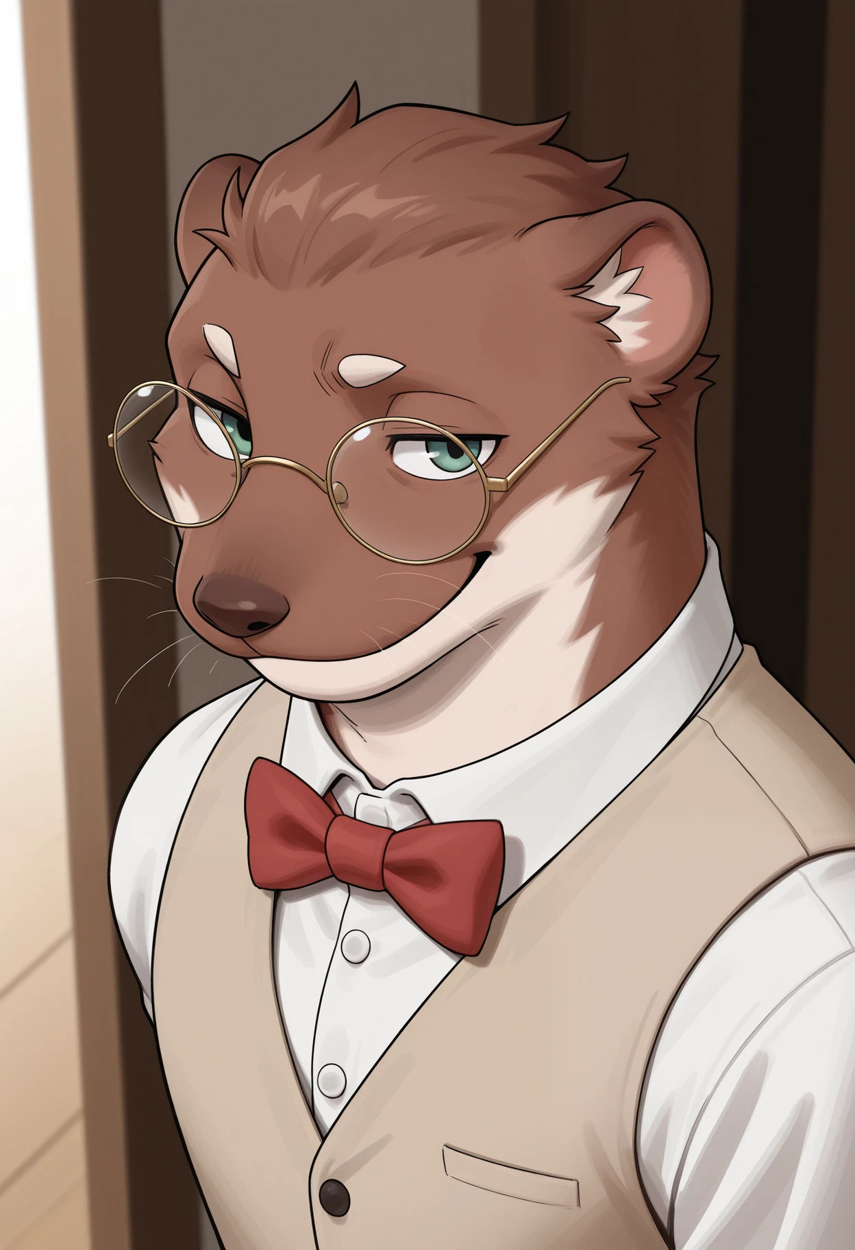 Trigger words: cl1ff, otter, green eyes, multicolored fur,