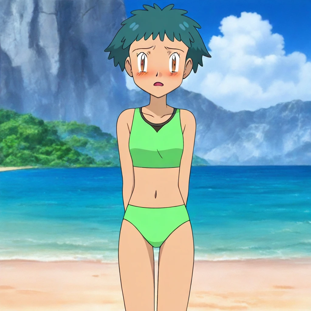 angie, pokemon, tomboy, short hair, teal hair color, amber eyes,