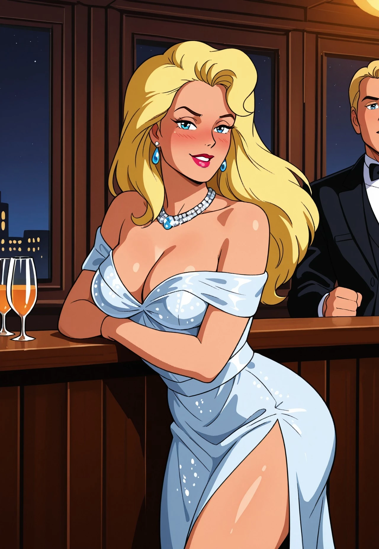 Base Prompt: susan storm, long hair, blonde hair, blue eyes, lipstick