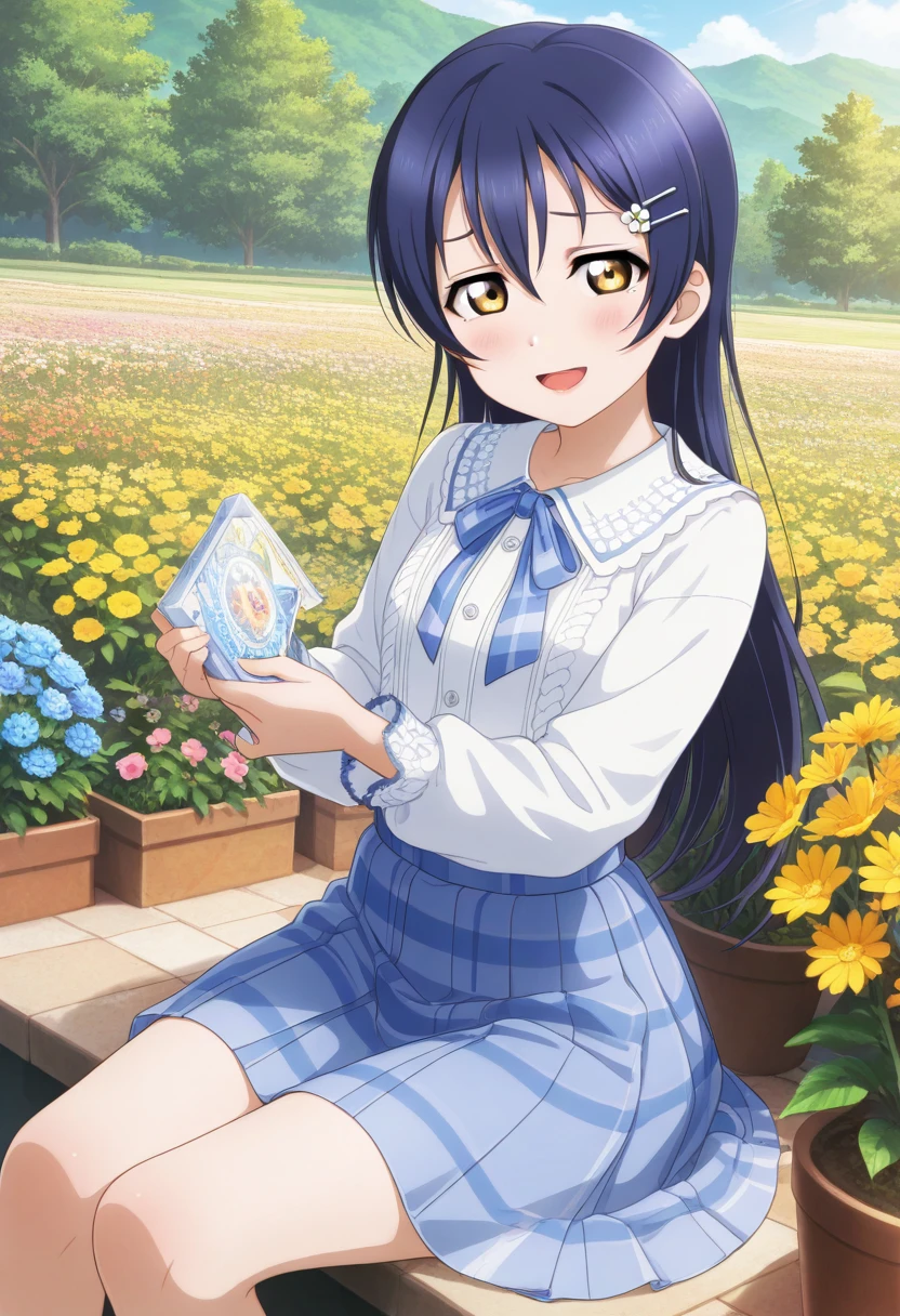 Trigger Words: sonoda umi, long hair, blue hair, yellow eyes