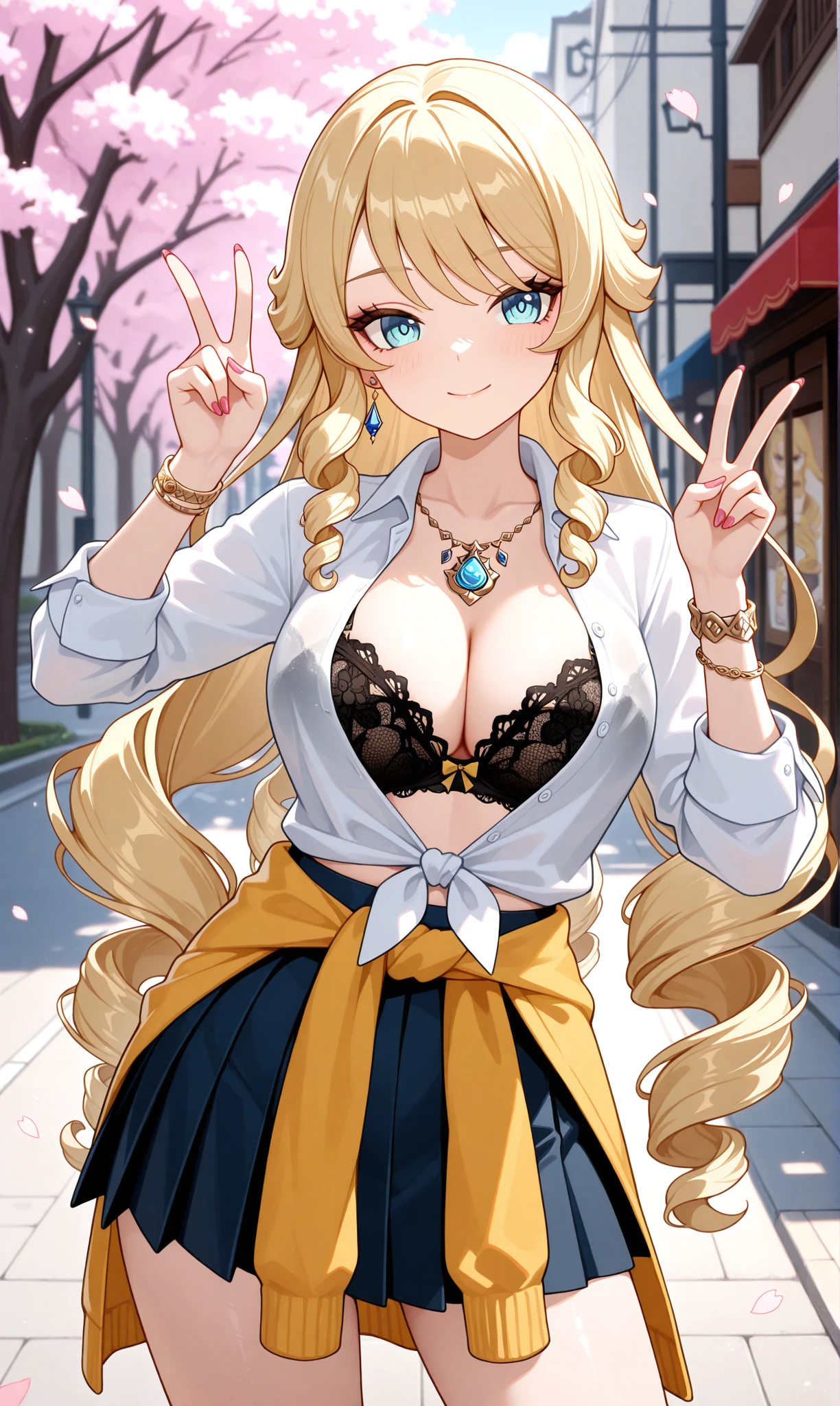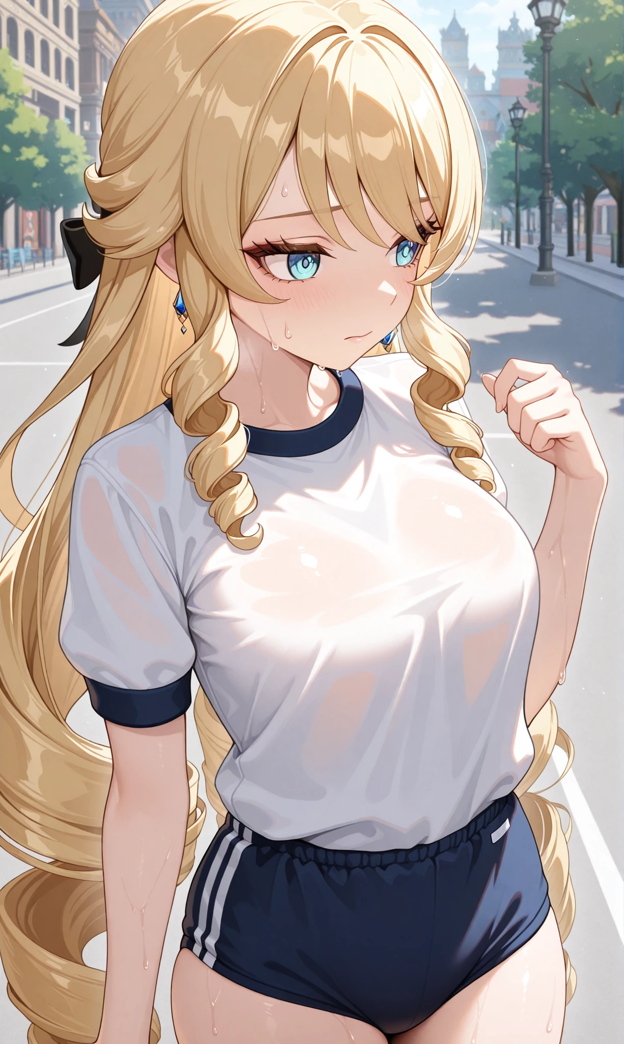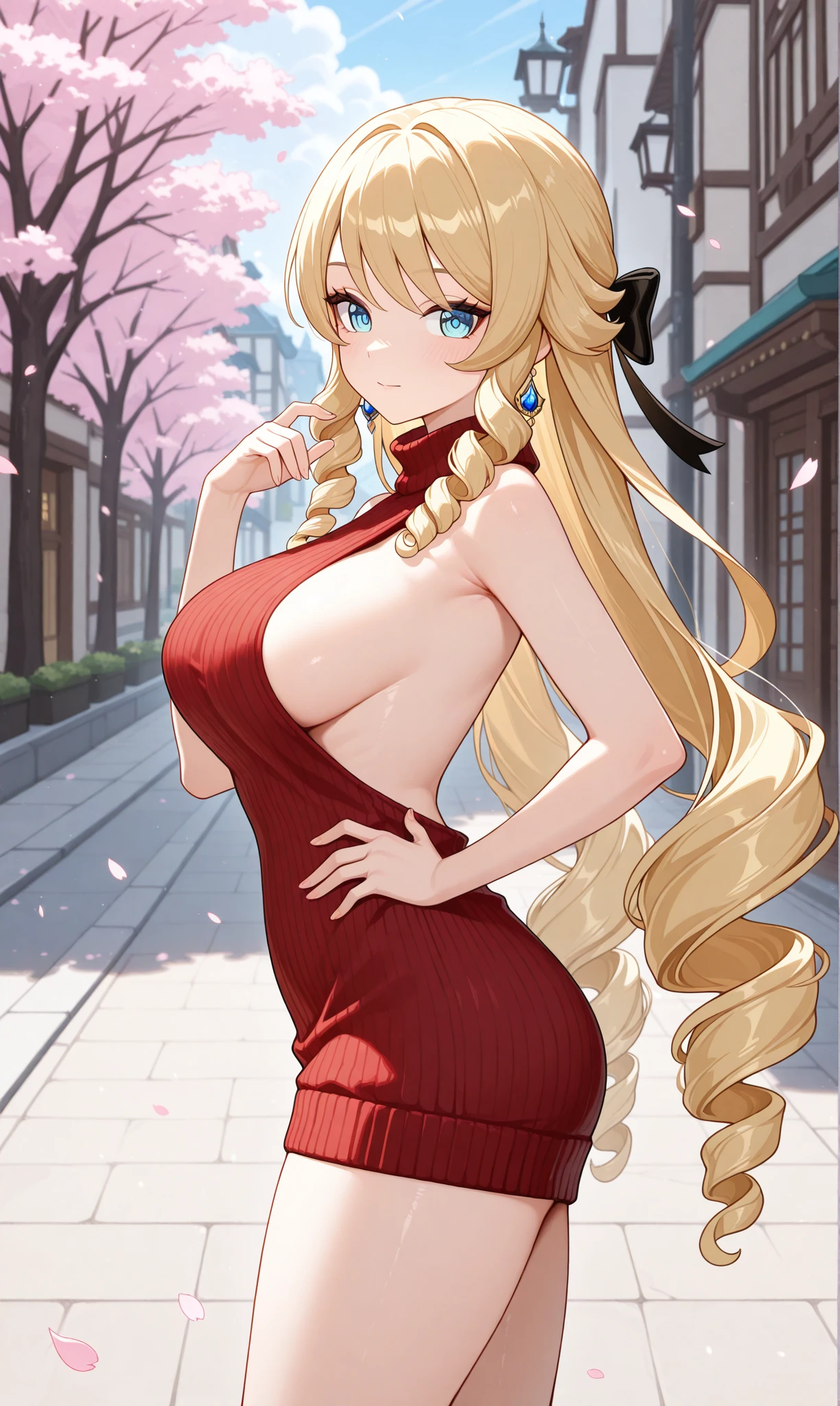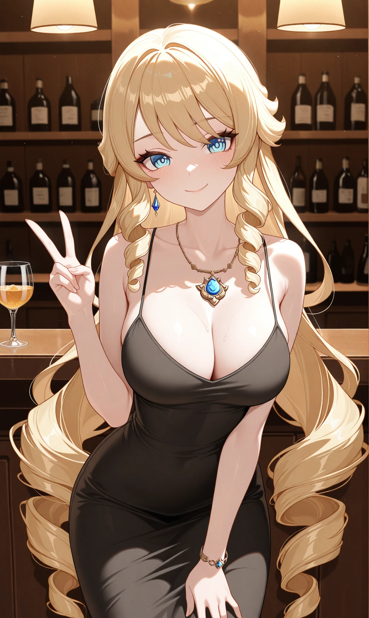 navia (genshin impact), blonde hair, long hair, blue eyes, drill hair, drill sidelocks