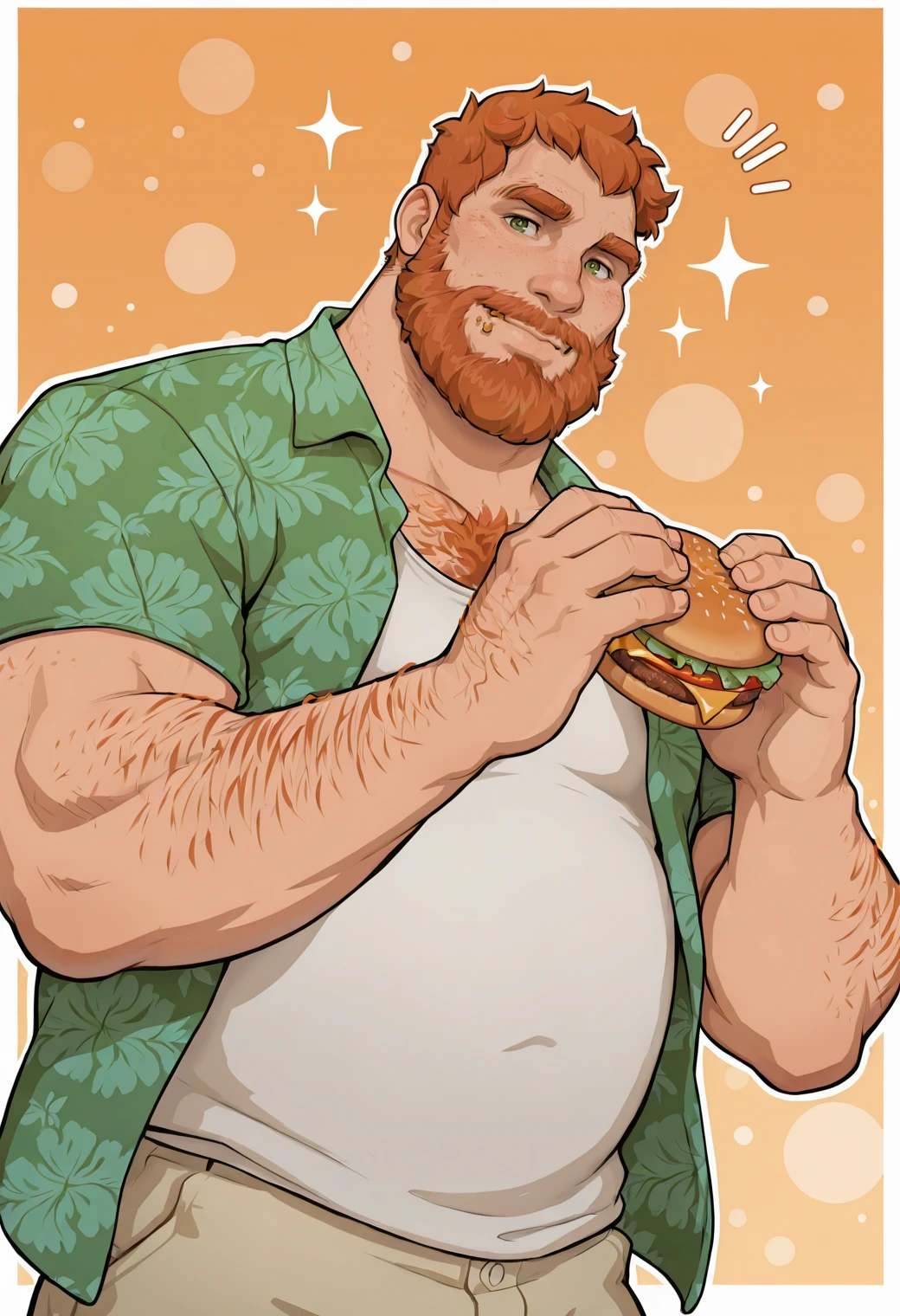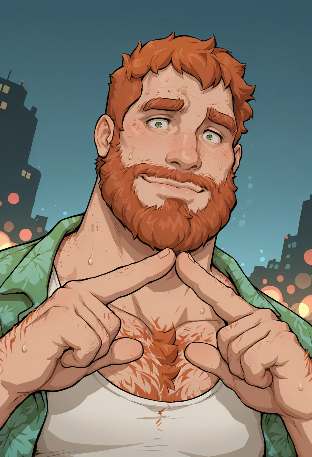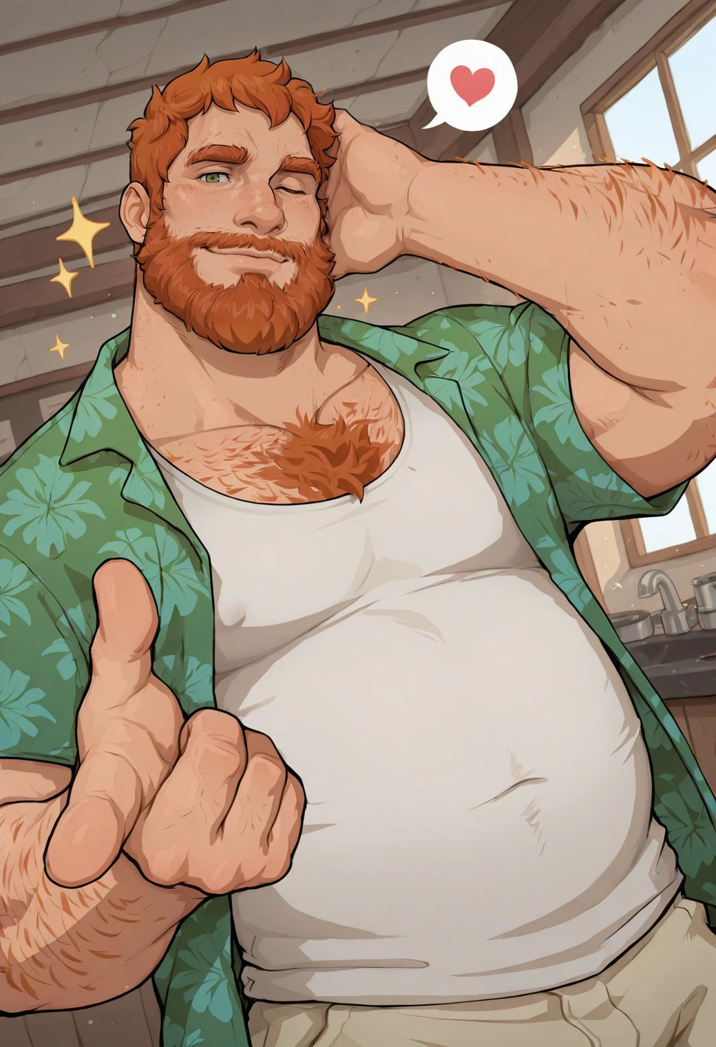 Brian Harding, chest hair, green eyes, orange hair, full beard