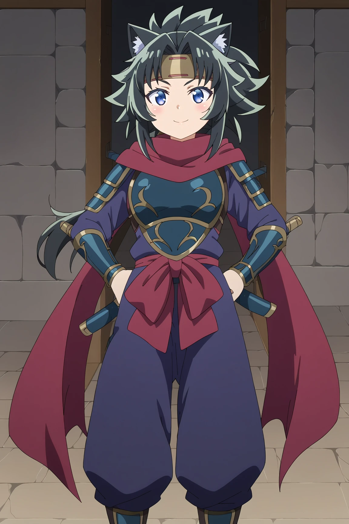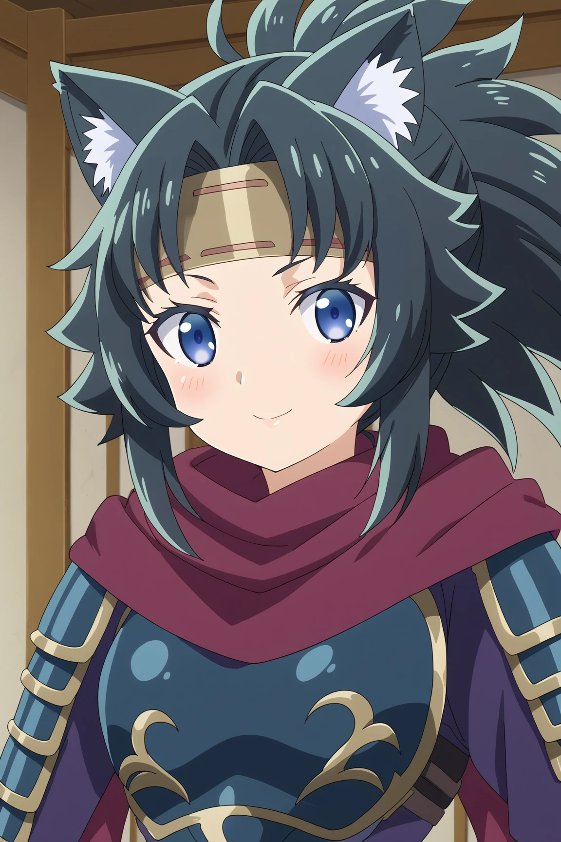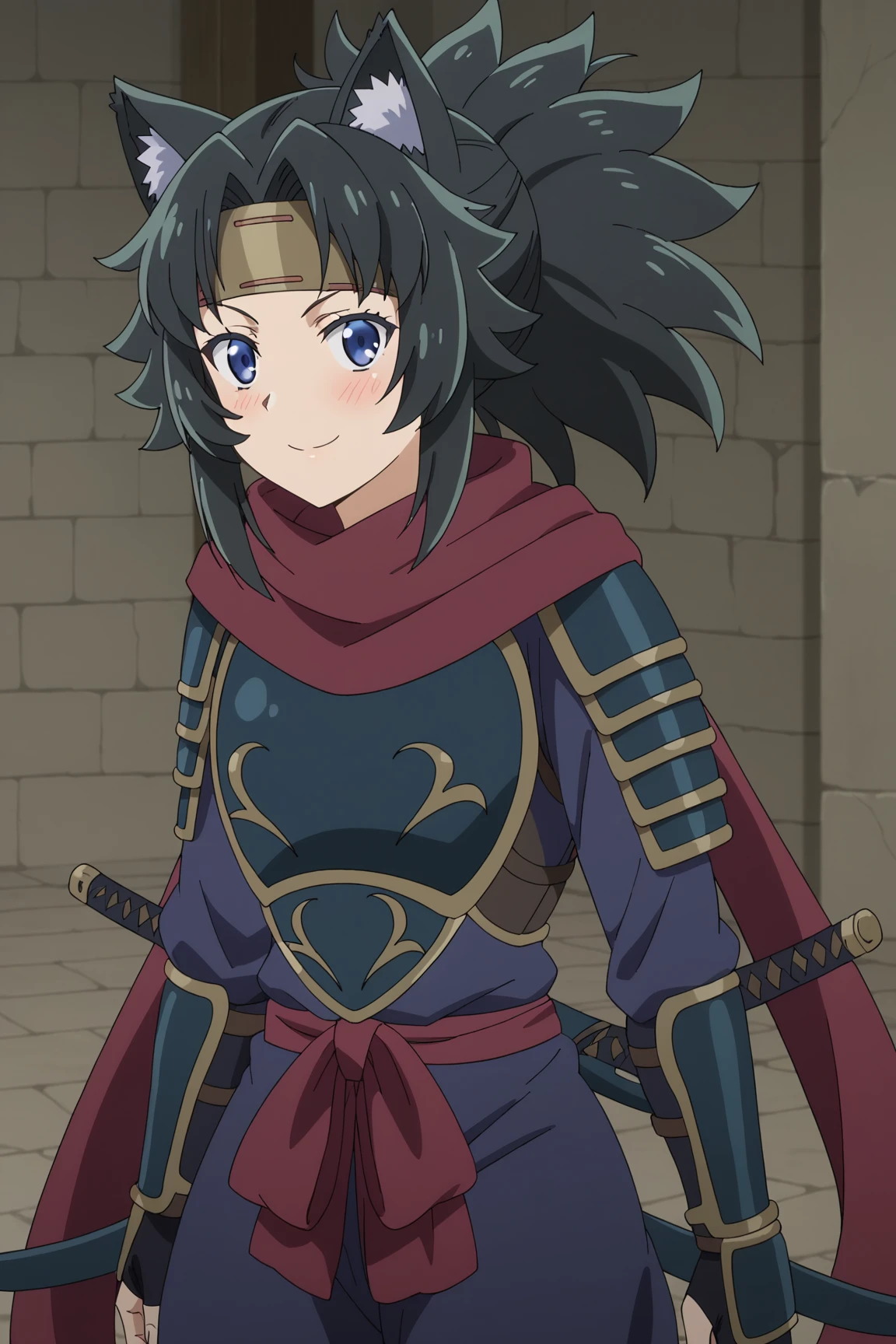 ninja, japanese armor, headband, scarf, cat ears,Quality tags for Pony Diffusion v6 and his variations: