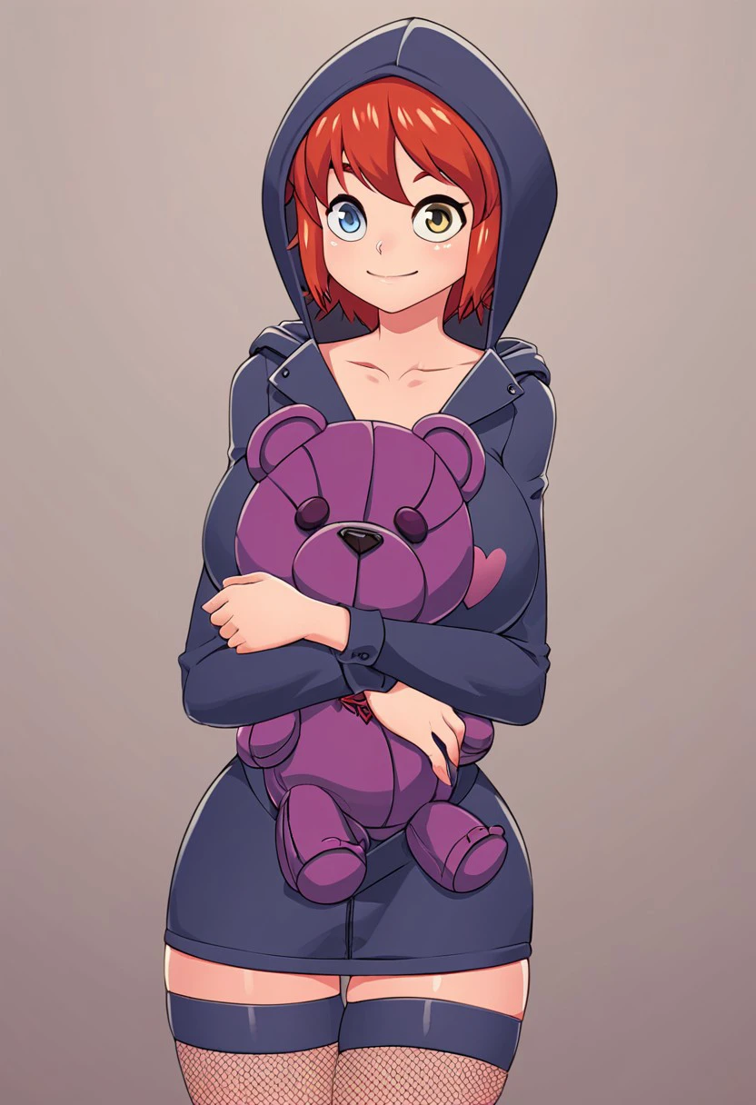 NicoleSOL, red hair, short hair, heterochromia, blue eyes, yellow eyes, big breast