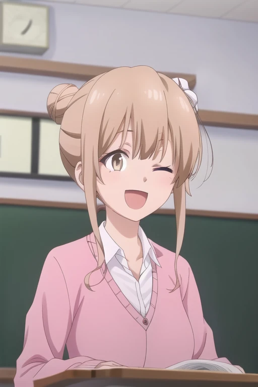Trigger Words: henmi yukari, brown hair, brown eyes, hair bun, single hair bun