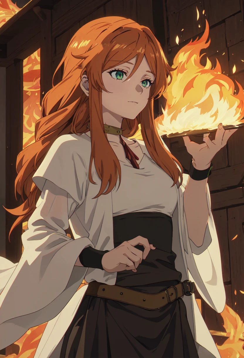 The trigger word is flamme_sousounofrieren, and the pruned tags are long_hair, green_eyes, brown_hair, orange_hair, earrings, braid.