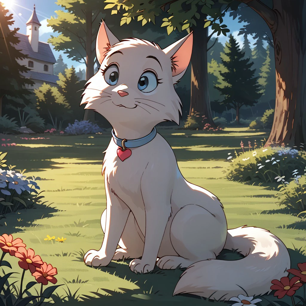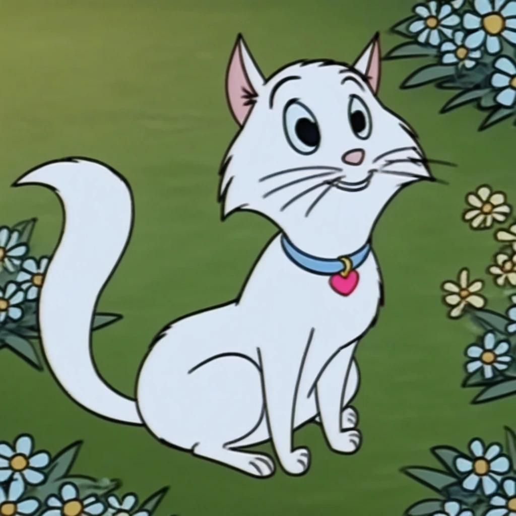 maisie_b, cat, furry, collar, heart collar, tail, sitting, grass, flowers