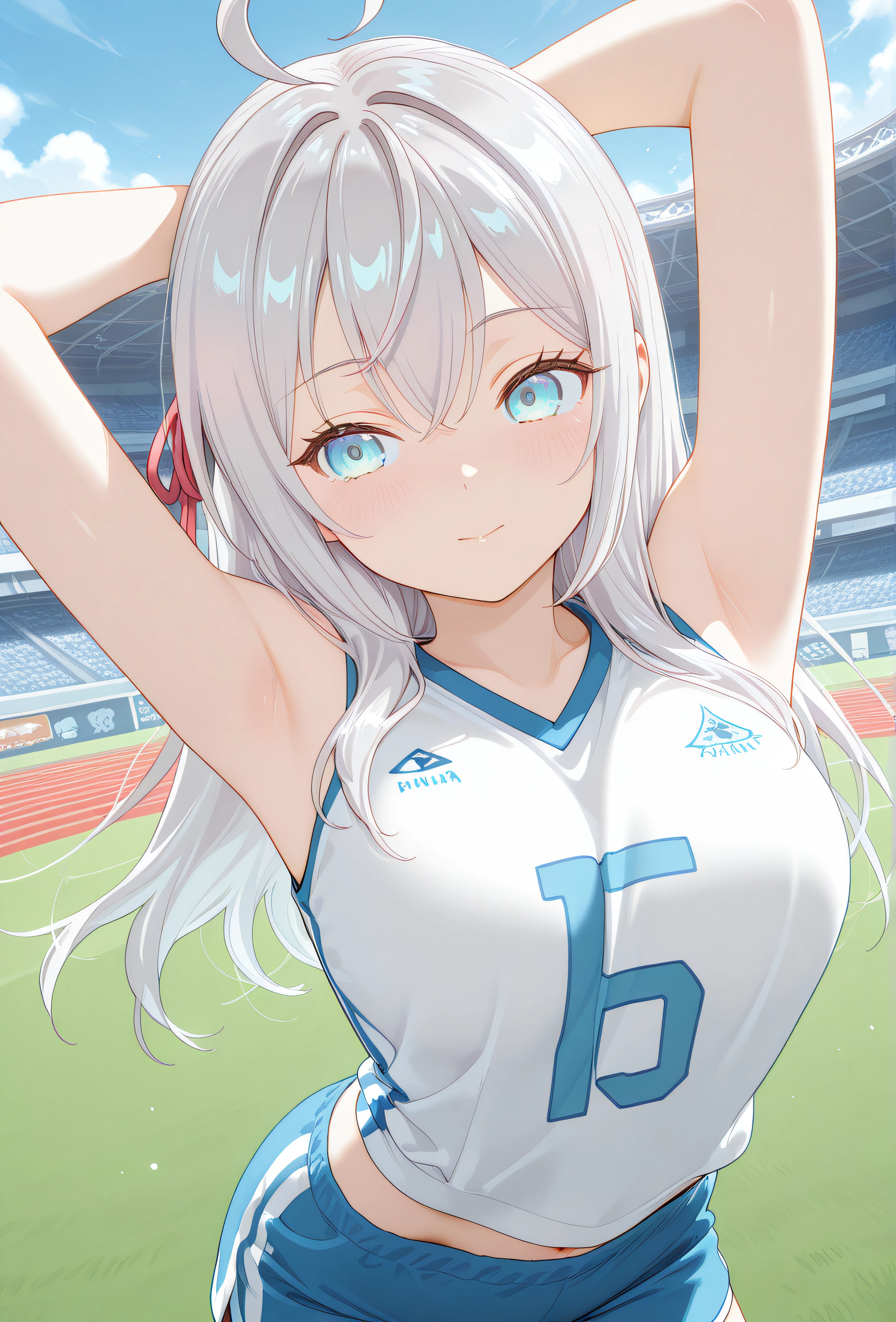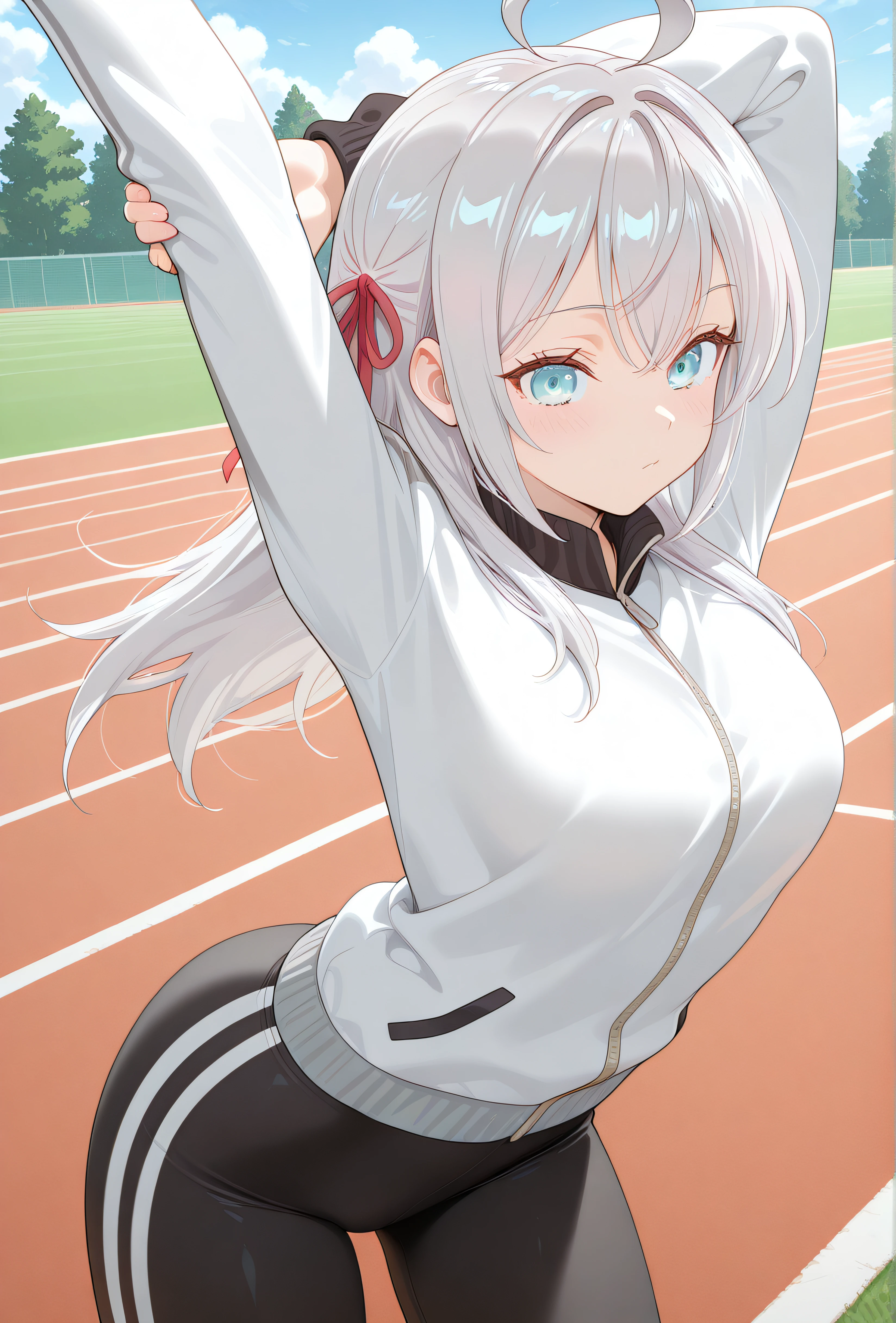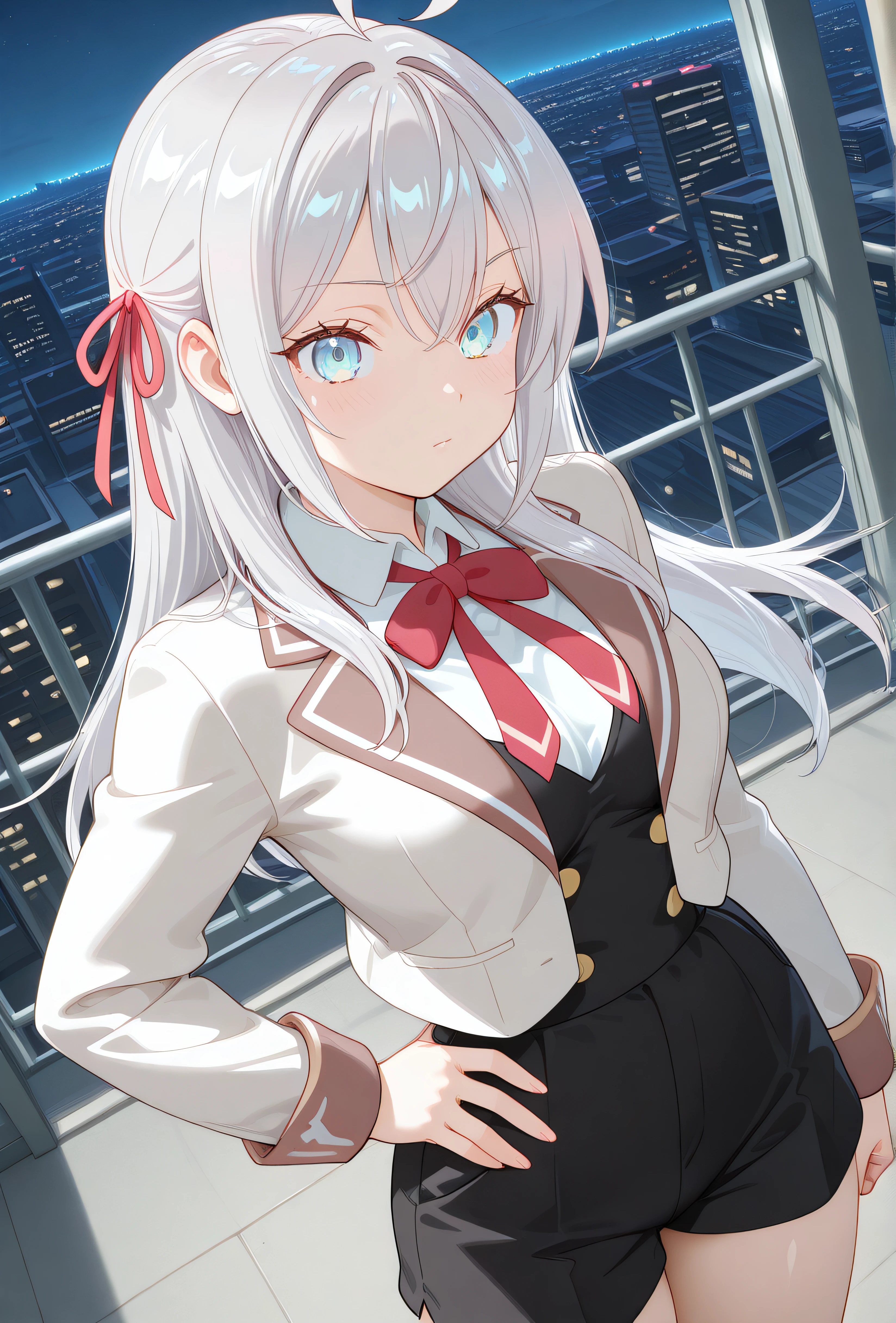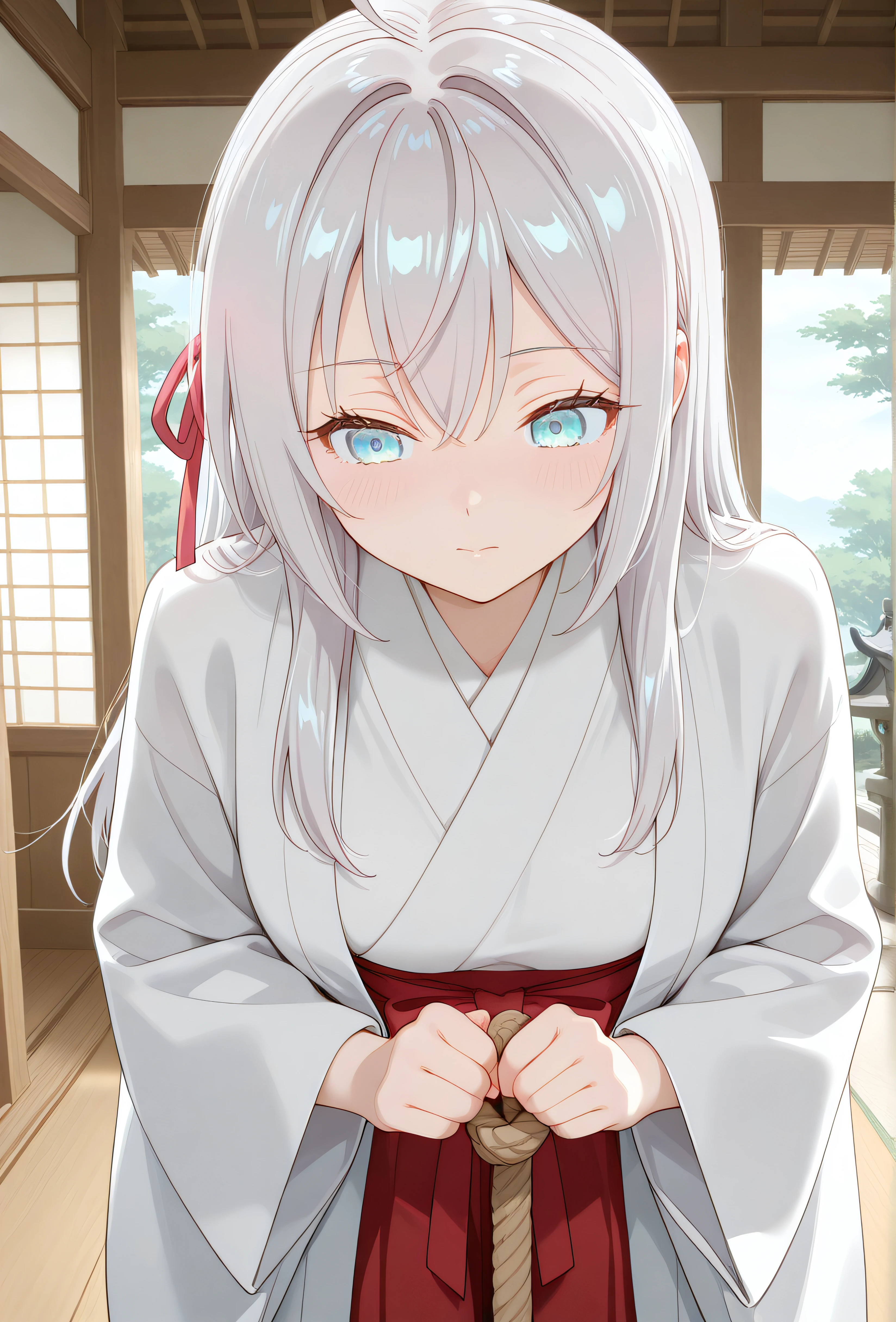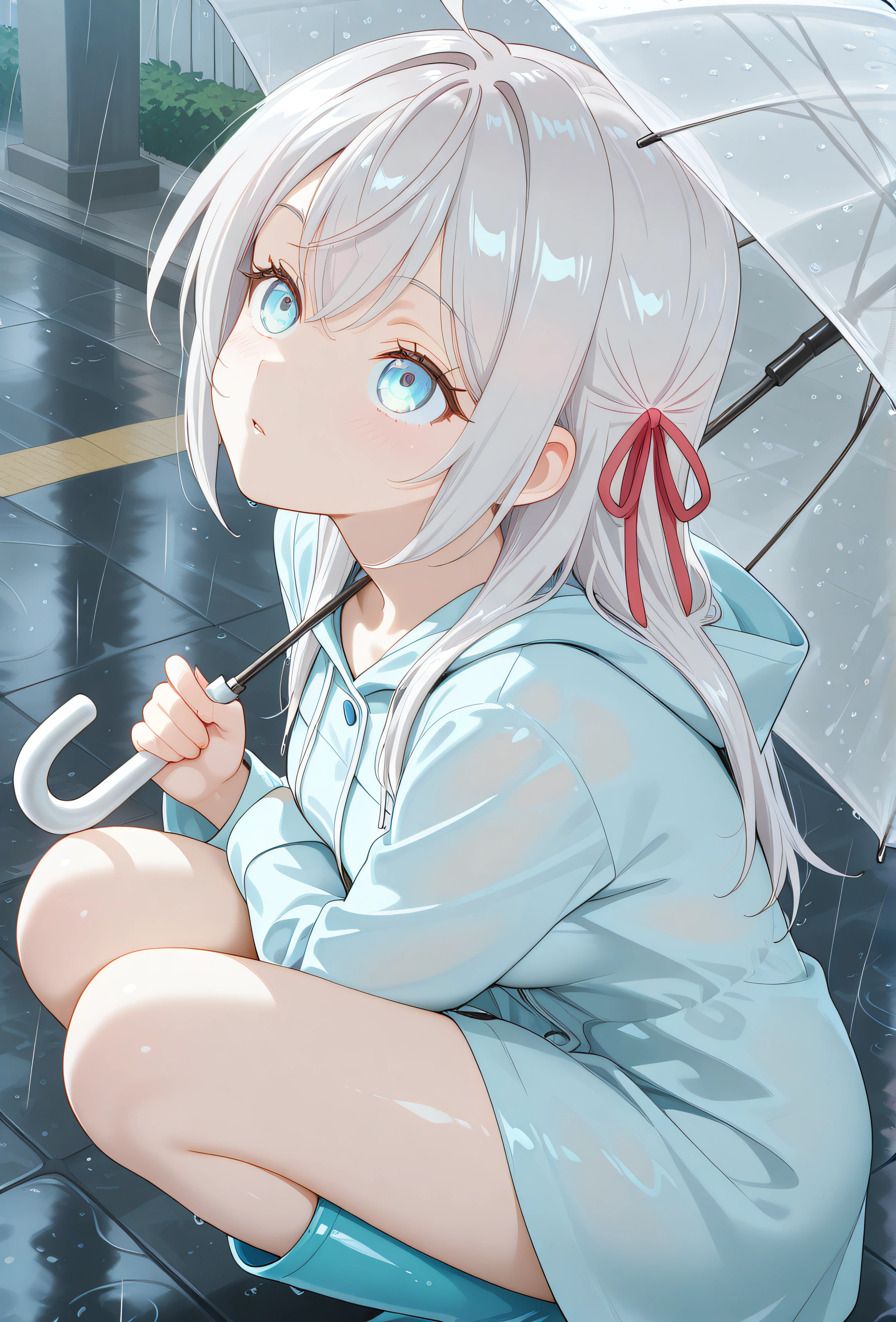 alisa, ribbon, hair ribbon, blue eyes, light blue eyes, aqua eyes, cyan eyes, eye highlight, shiny eyes, beautiful detailed eyes, long eyelashes, long hair, straight hair, white hair, silver hair
