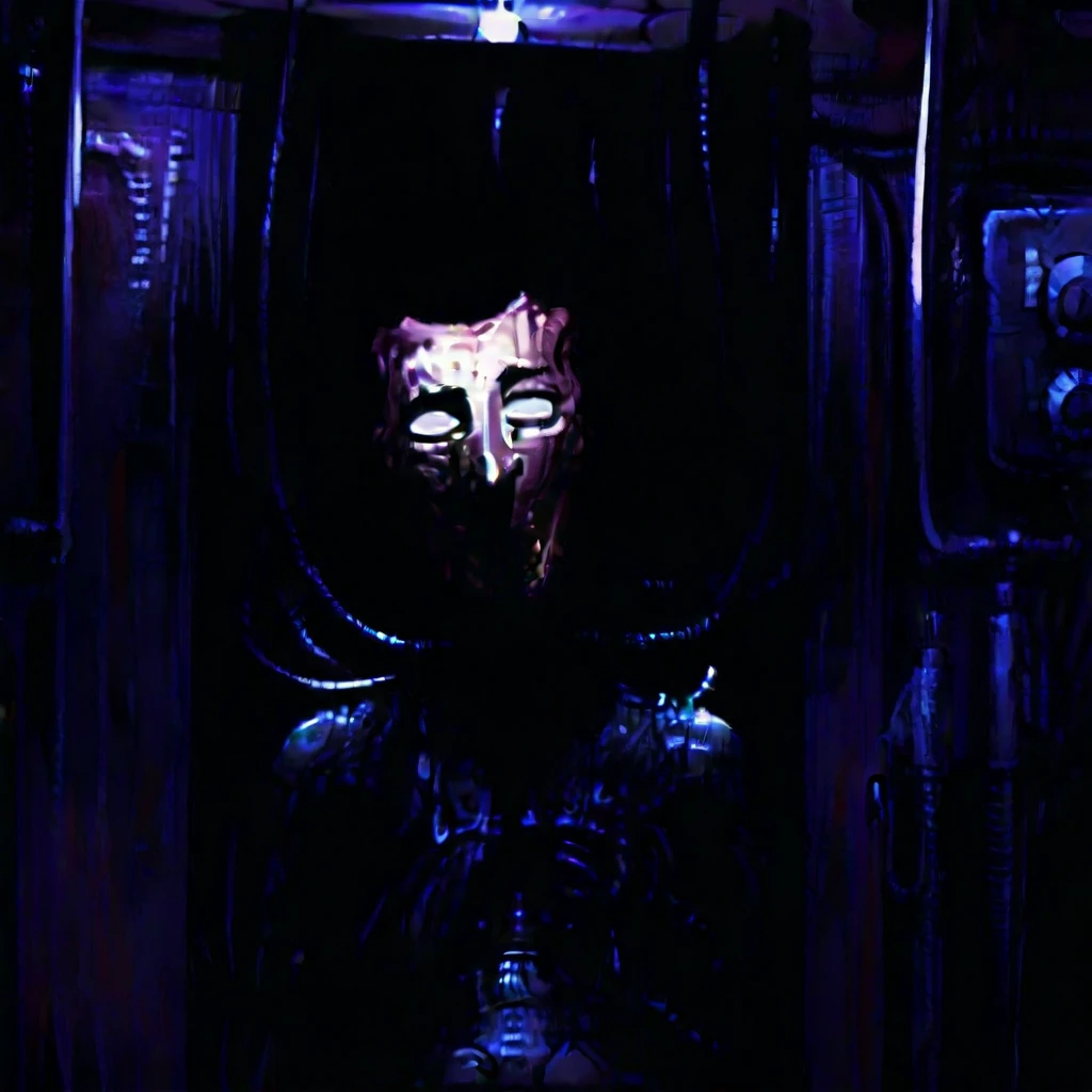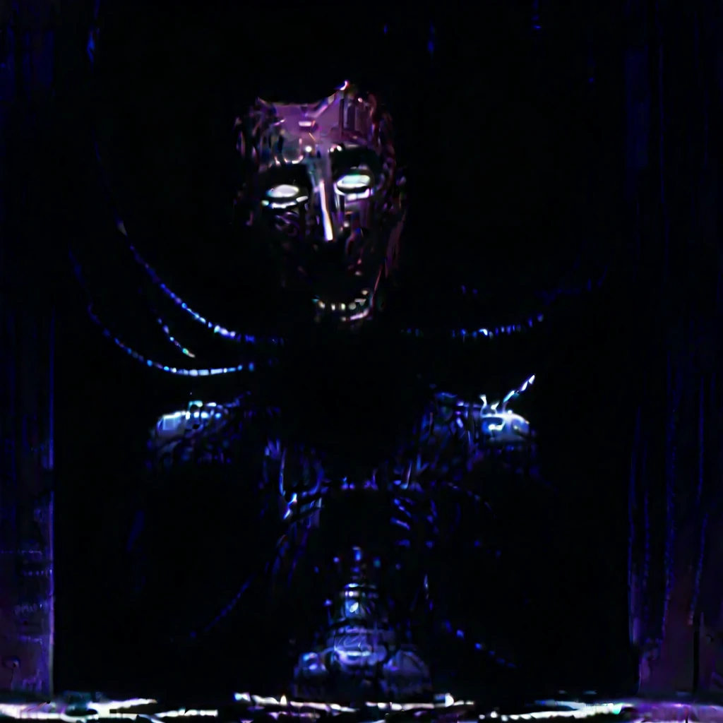 Uriel, husk, prisoner, test subject, 1boy, solo, upper body, melted face, skull-like face, hollow eyes, empty eye sockets, sunken eyes, cables