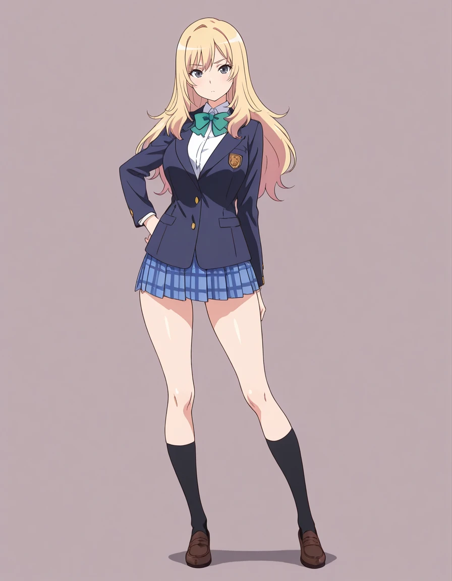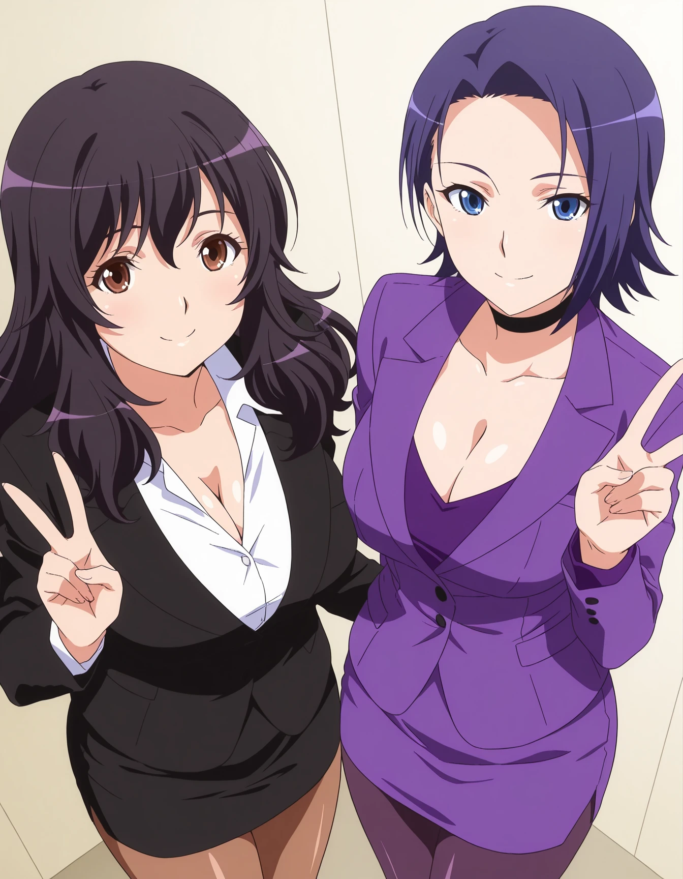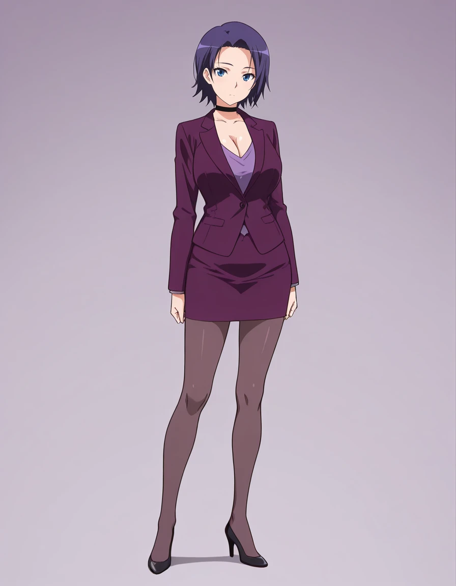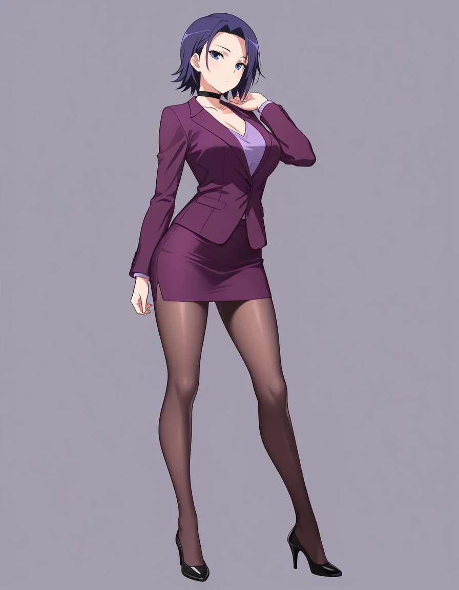 mai_marb,mai_asaomb,anime_coloring,short_hair,purple_hair,blue_eyes,black_choker,suit,purple_jacket,purple v-neck,purple_pencil_skirt,pantyhose,highe_heels