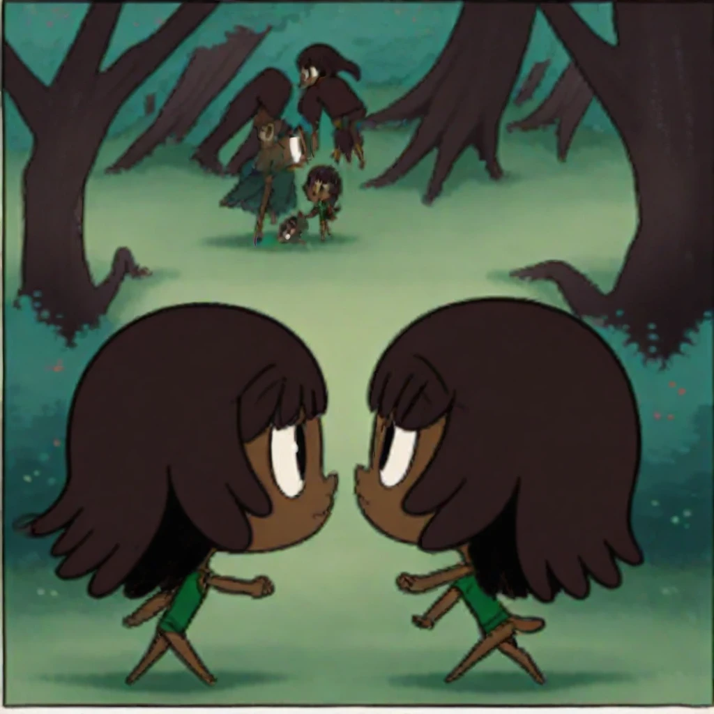 dark skin, bangs, chibi, shirt, brown hair, dark-skinned female,